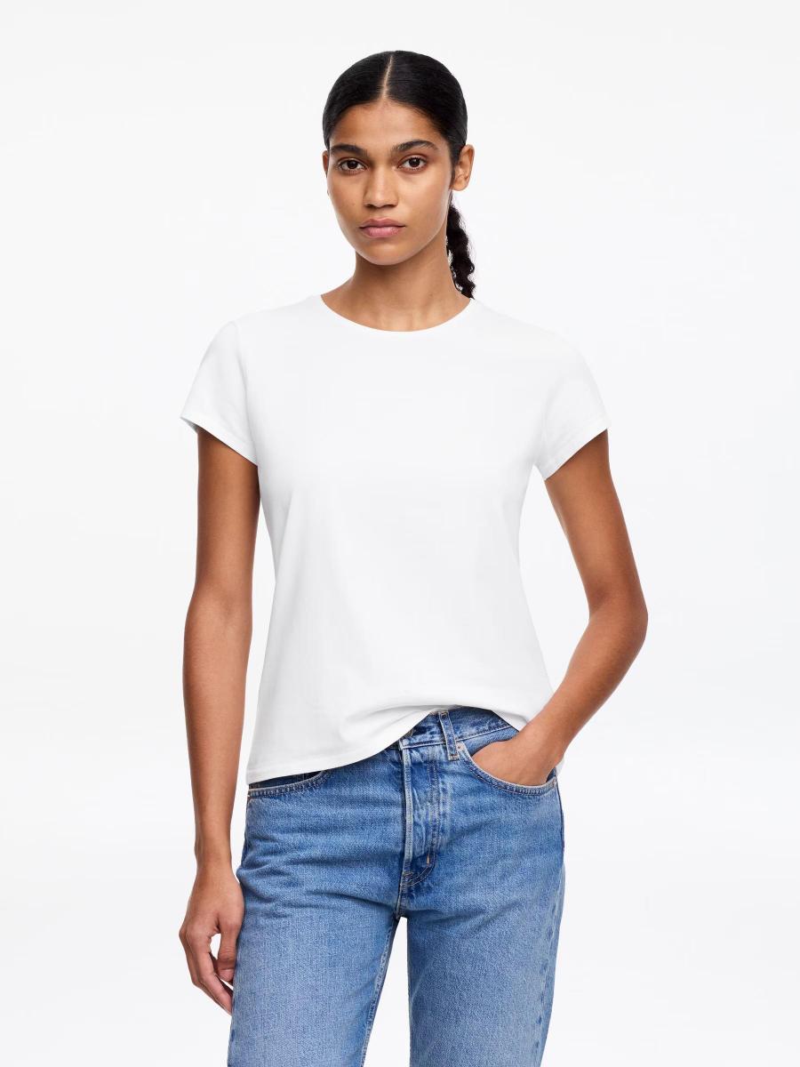Crafted for everyday ease, this slim-fit T-shirt features a flattering, fitted silhouette, finished with clean detailing and cap sleeves.ARKET/Women's clothes/Women's tops/Women's T-shirts