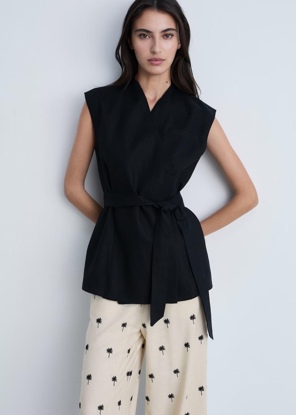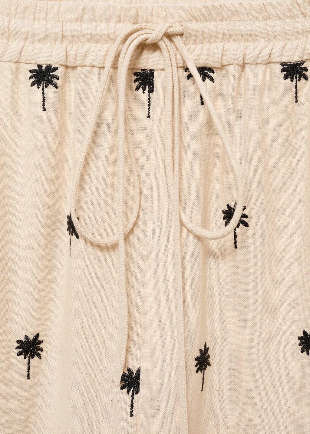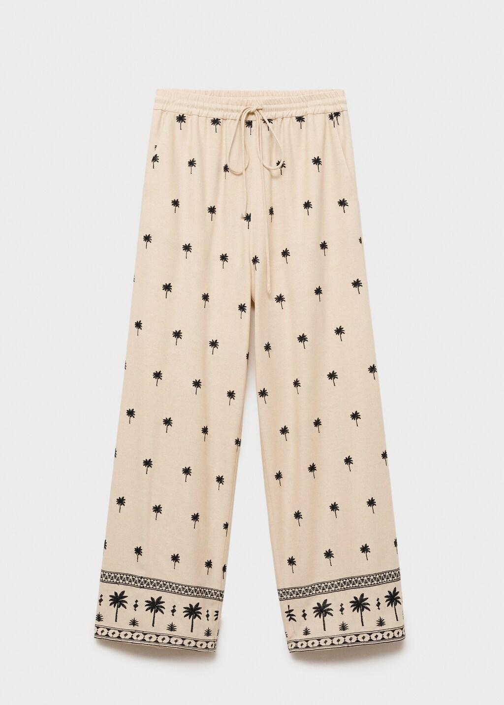 Tejido mezcla de lino. Diseño bordado. Diseño largo. Diseño recto. Tiro medio. Lazo ajustable en la cintura. Cintura con goma elástica. Sin cierre. Total look. Ramadan Collection