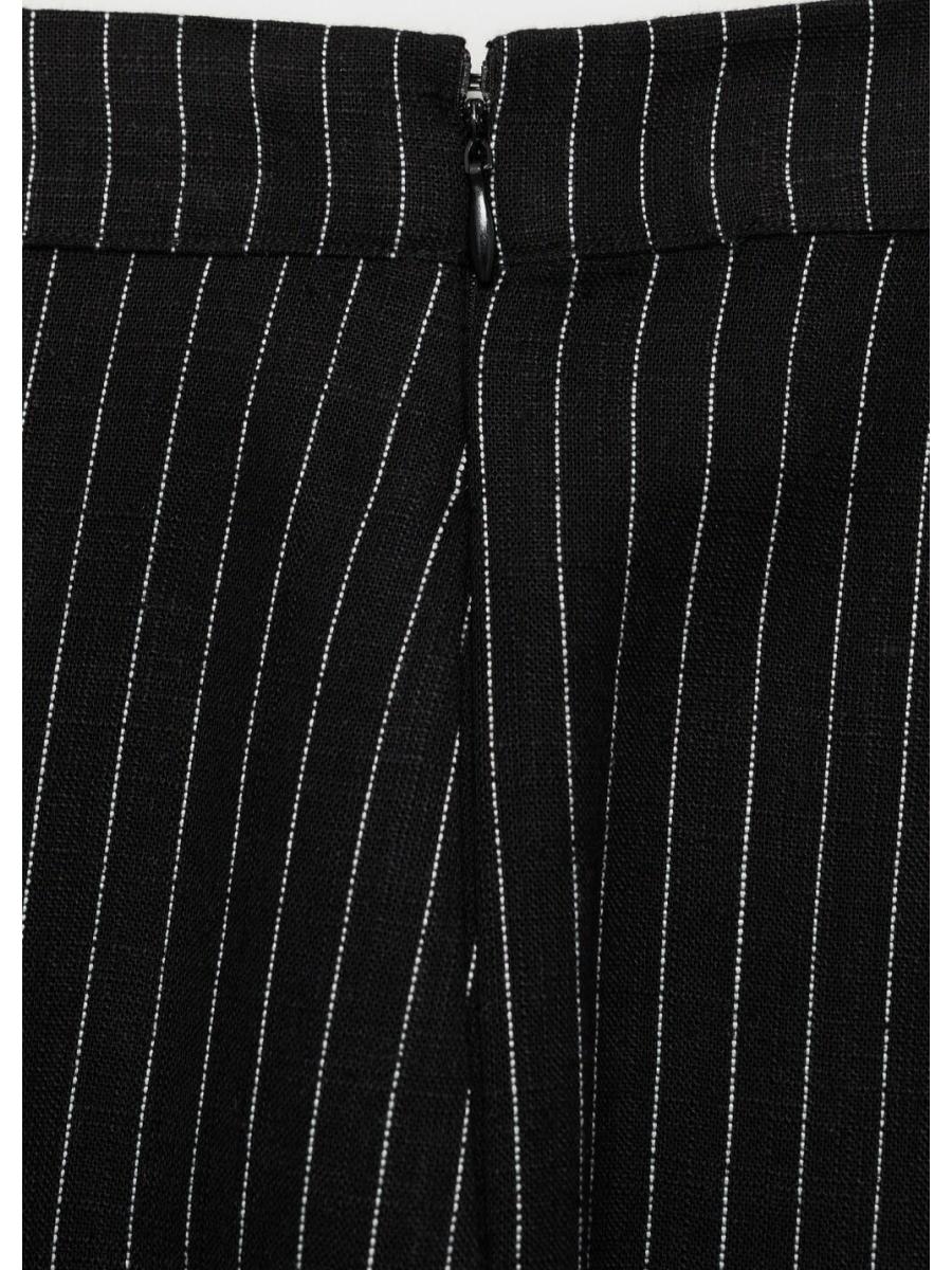 Tejido mezcla de lino. Diseño recto. Diseño largo. Estampado de rayas. Tiro medio. Cierre de cremallera en la parte posterior. Total look