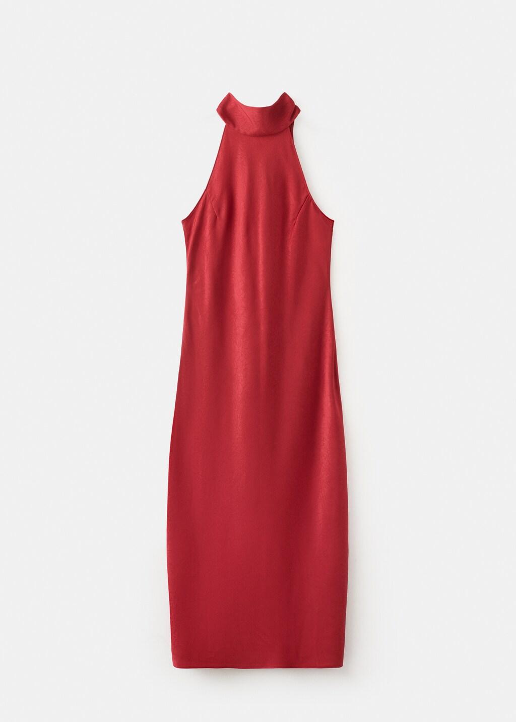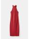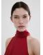 Diseño largo. Diseño recto. Cuello halter. Sin mangas. Cierre de lazo en el cuello. Esta prenda pertenece a nuestra colección de fiesta y evento, diseñada para elevar tus looks en ocasiones especiales. El color burdeos es exclusivo online