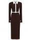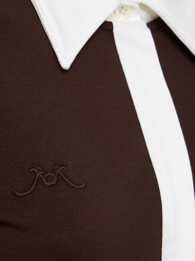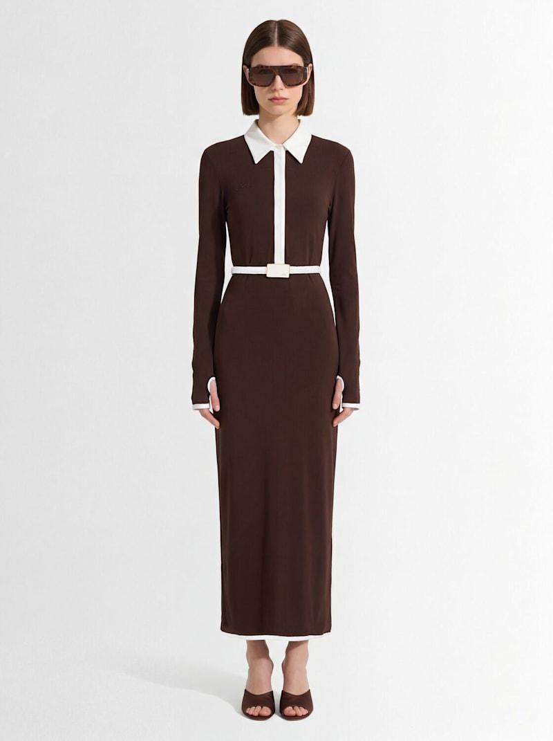 长袖Polo式连衣裙 - 棕色 - 女士 - Rowen Rose - 对比色衣领.