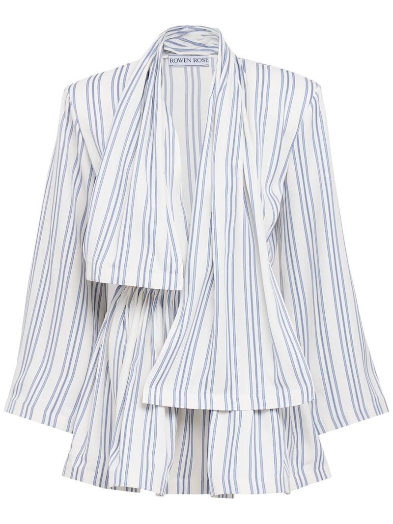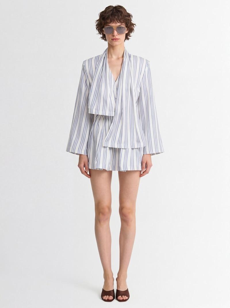条纹双绉迷你连衣裙 - 蓝色/多色 - 女士 - Rowen Rose - 侧面隐形拉链开合.