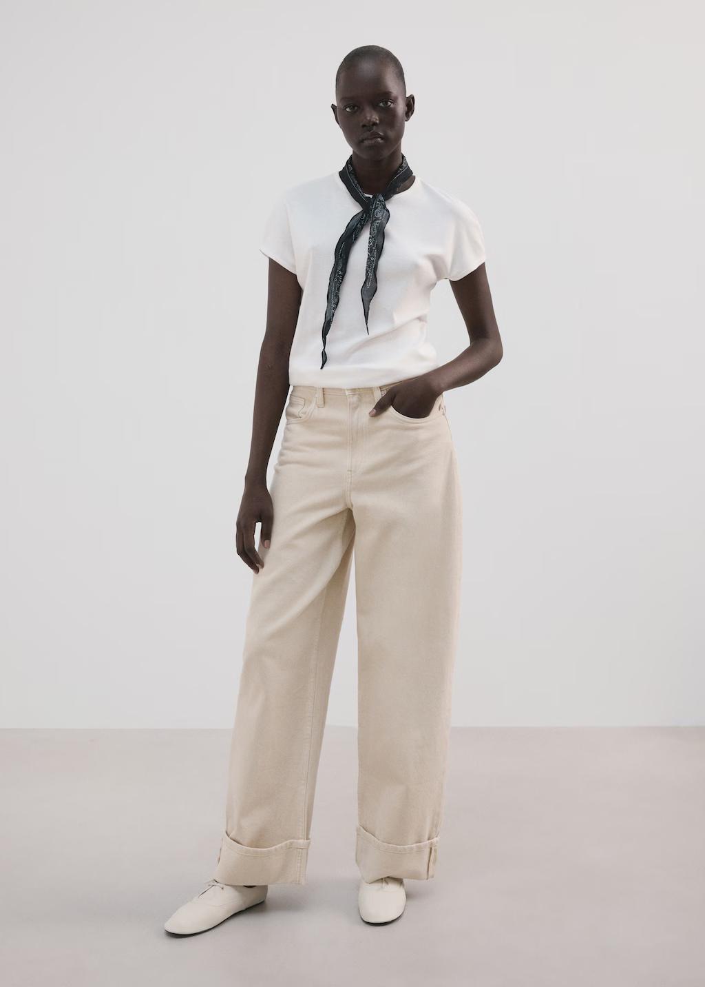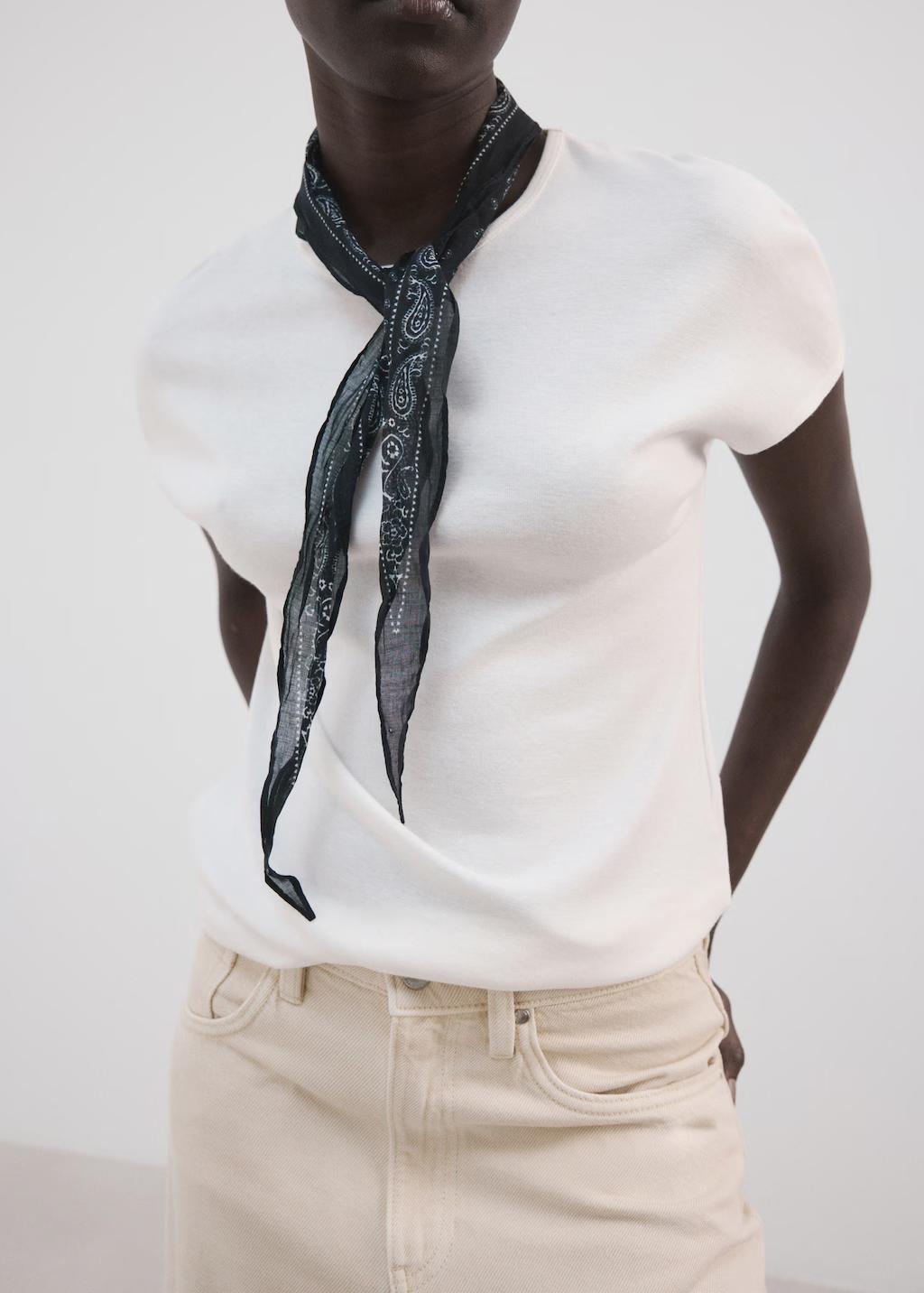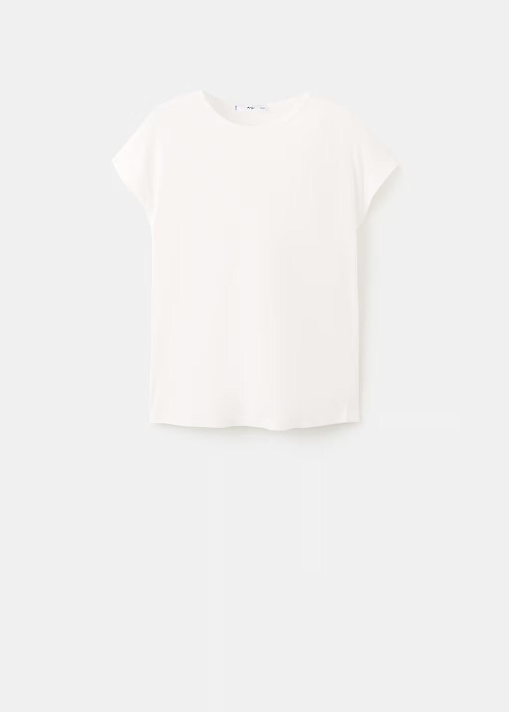 Tejido mezcla de modal y algodón. Tejido fino. Diseño recto. Cuello redondo. Manga corta. Bajo recto