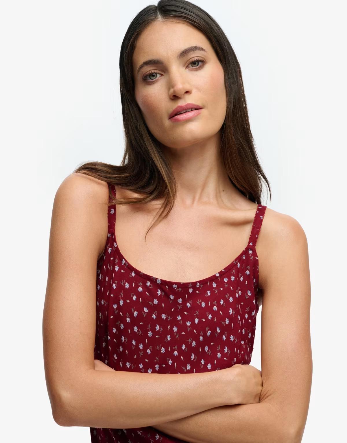 Superdry Printed cami maxi dress in bordeaux red ditsy floral