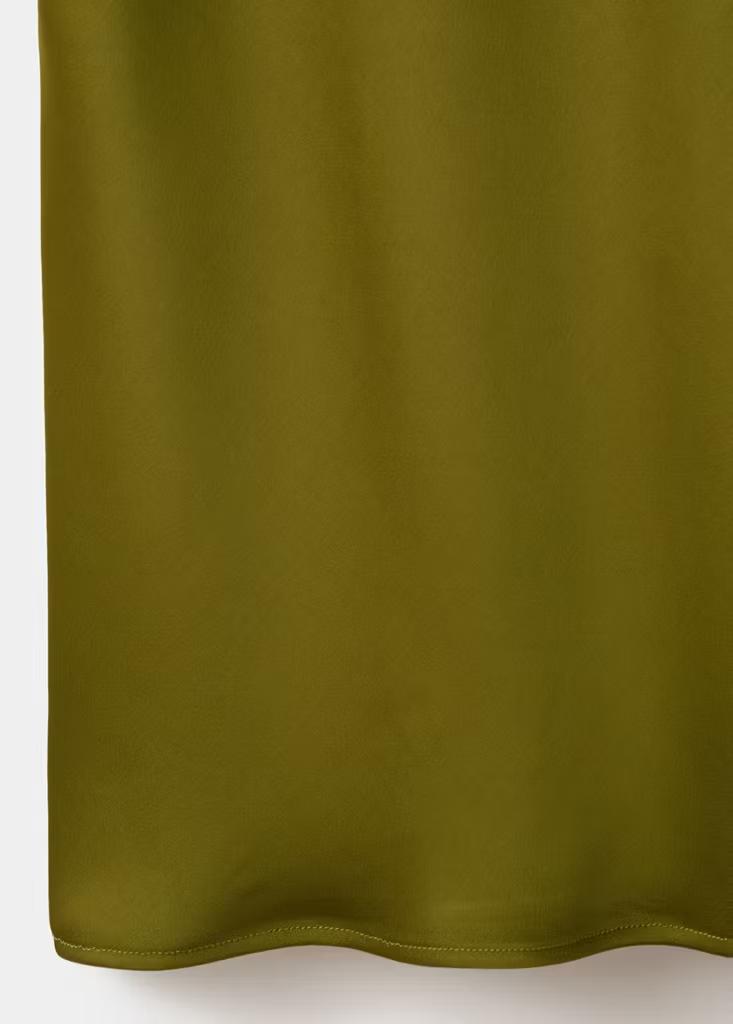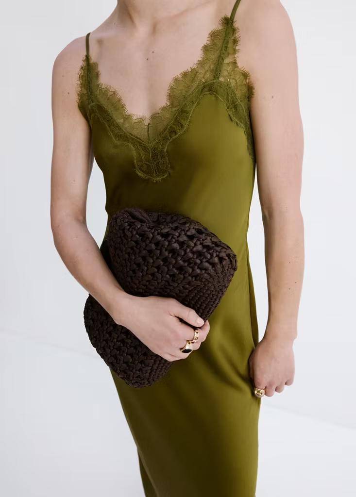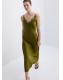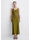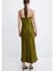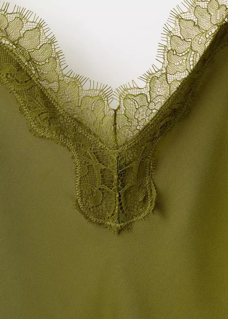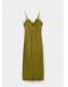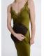 Tejido satinado. Diseño largo. Diseño entallado. Cuello pico. Panel de encaje en el cuello. Sin mangas. Tirantes finos. Sin cierre. Forro interior