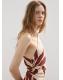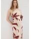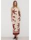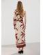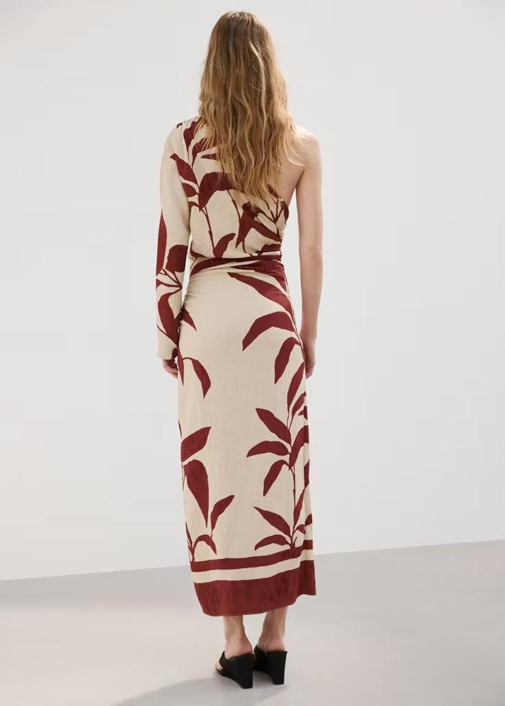 Diseño midi. Diseño entallado. Diseño estampado. Cuello asimétrico. Manga larga. Cuerpo fruncido