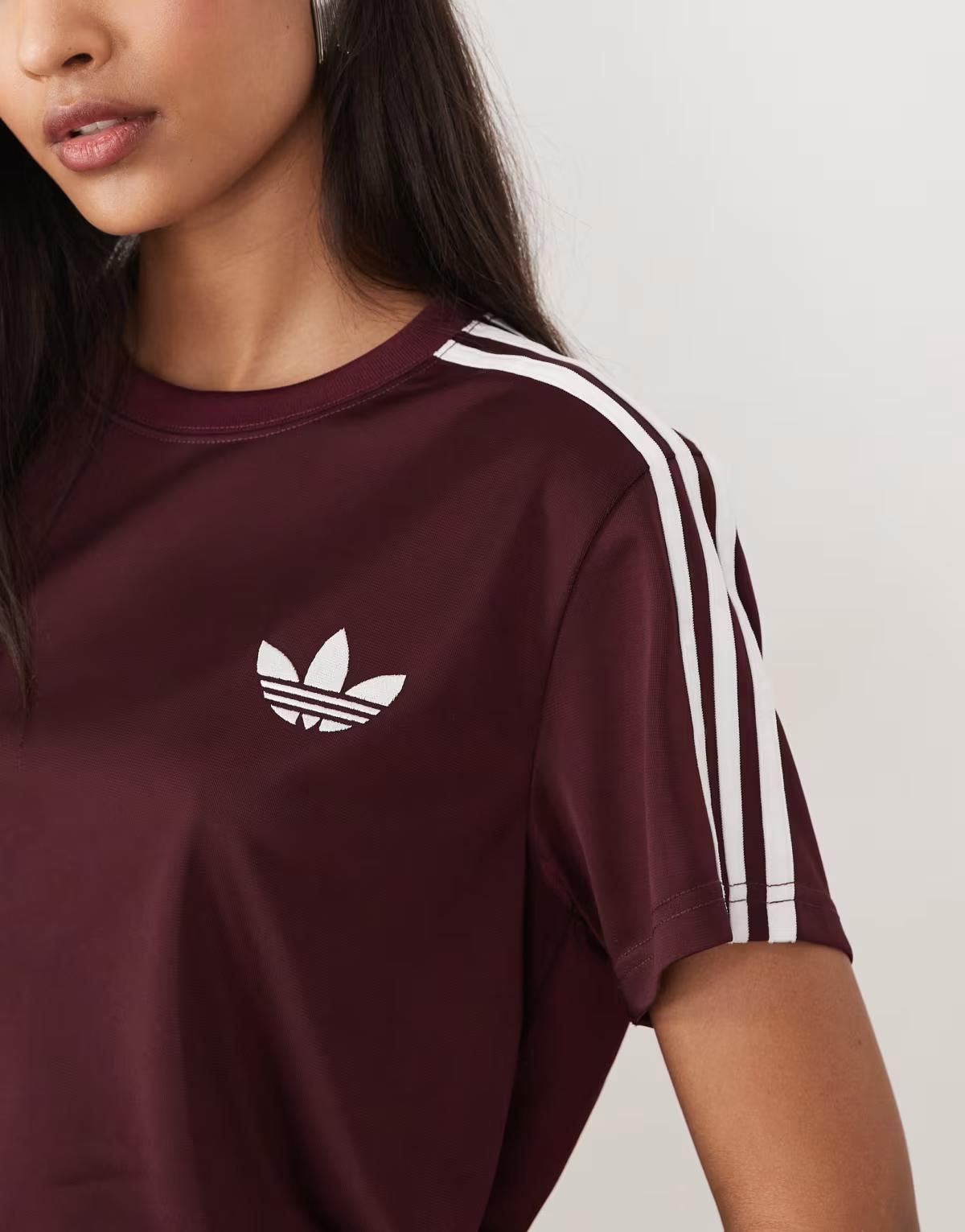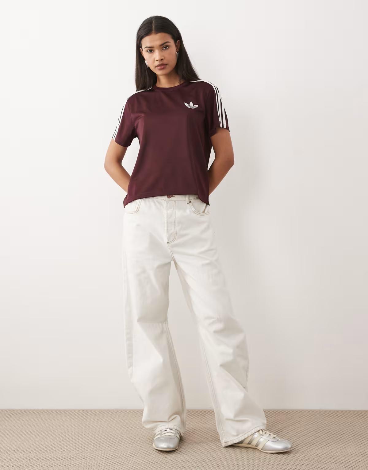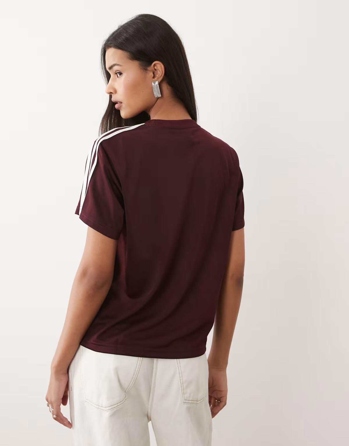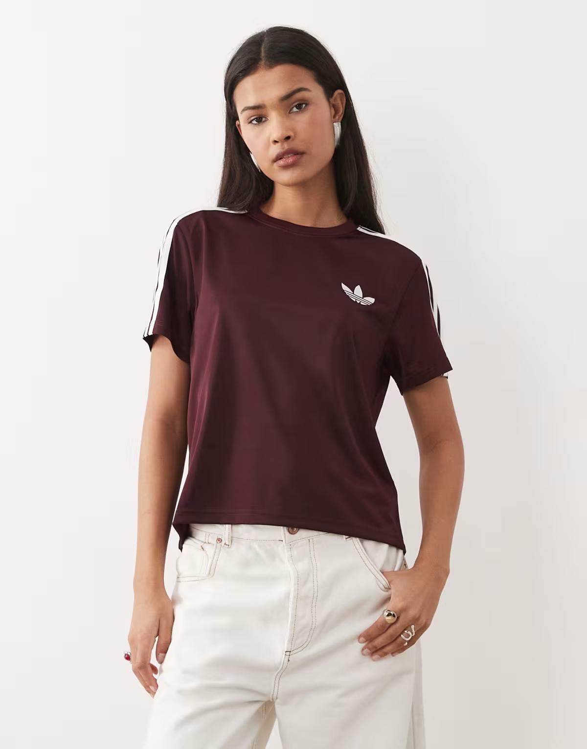 adidas Originals Firebird tee in maroon / off white