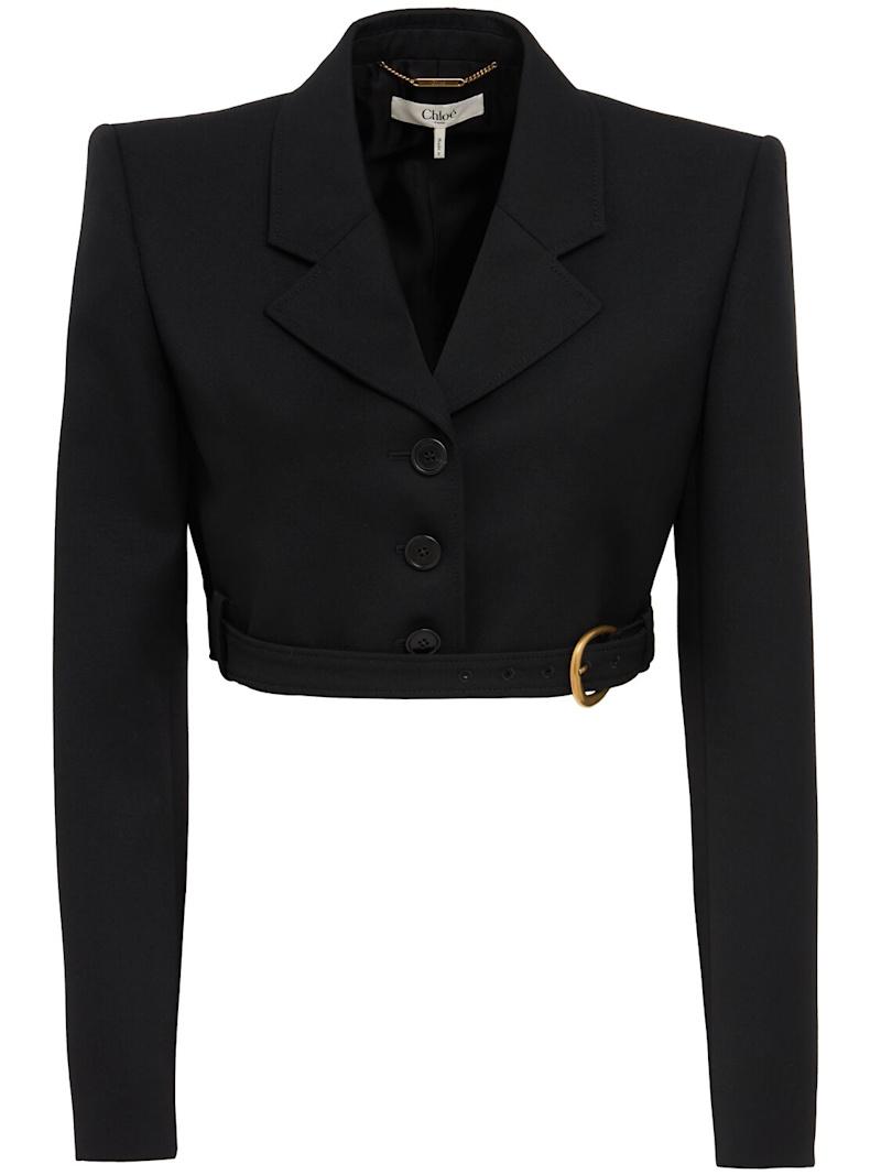 grain de poudre羊毛短款西服夹克 - 黑色 - 女士 - Chloé - 正面纽扣开合.