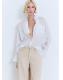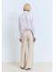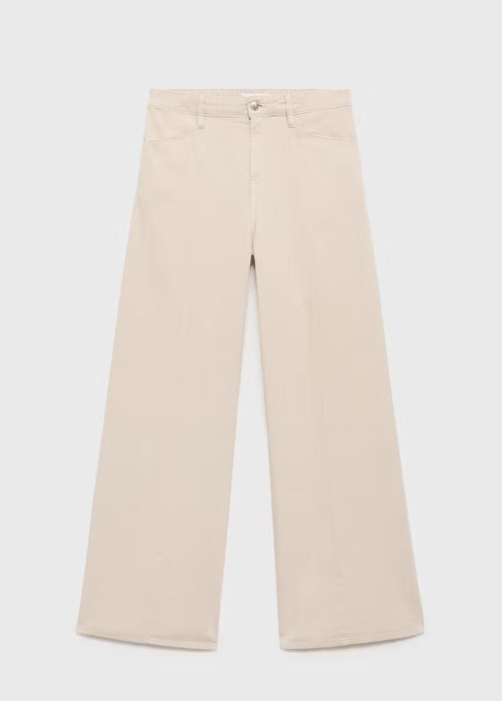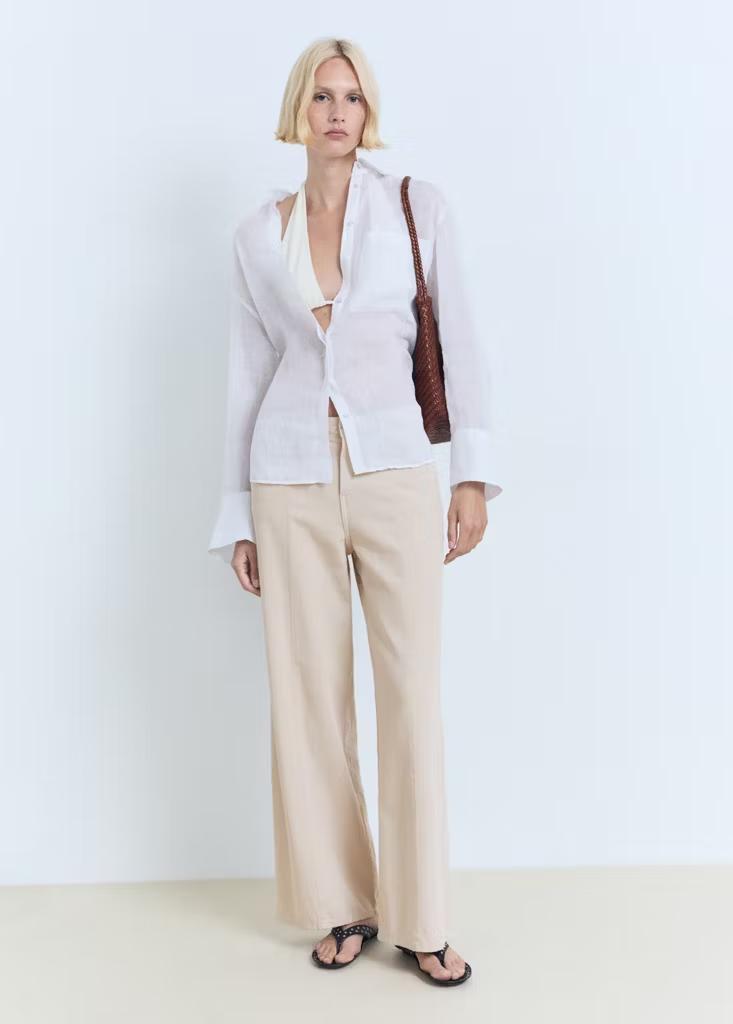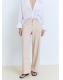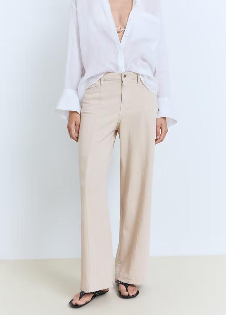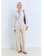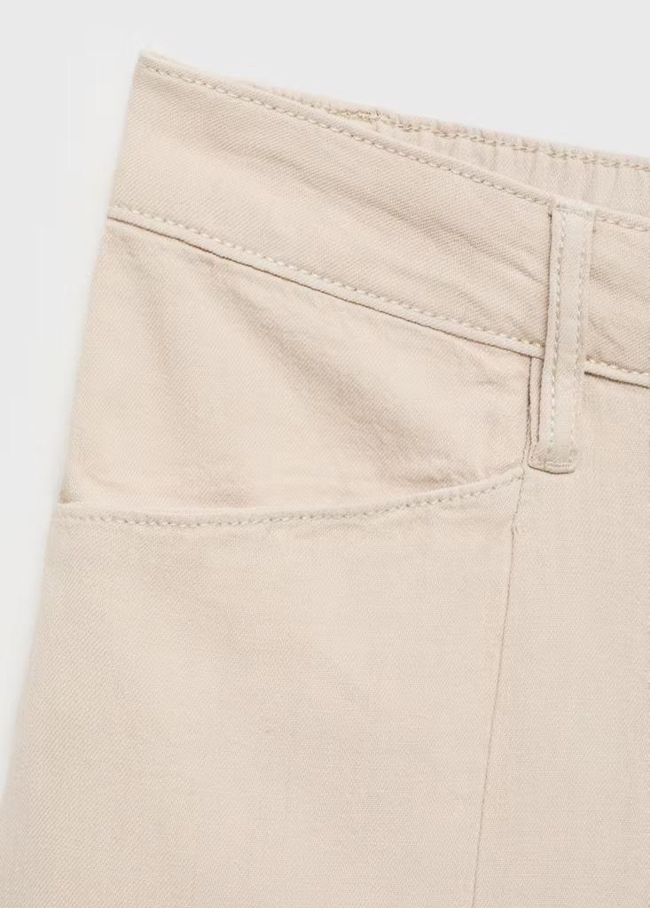 Tejido mezcla de algodón y lino. Estilo tejano vaquero. Diseño recto. Tiro medio. Trabillas. Cuatro bolsillos. Goma elástica en la parte posterior. Cierre delantero de cremallera y botón