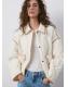 Diseño oversize. Cuello camisero. Manga larga. Ribetes en contraste. Dos bolsillos de parche en la parte delantera. Cierre de botones en la parte delantera. Forro interior