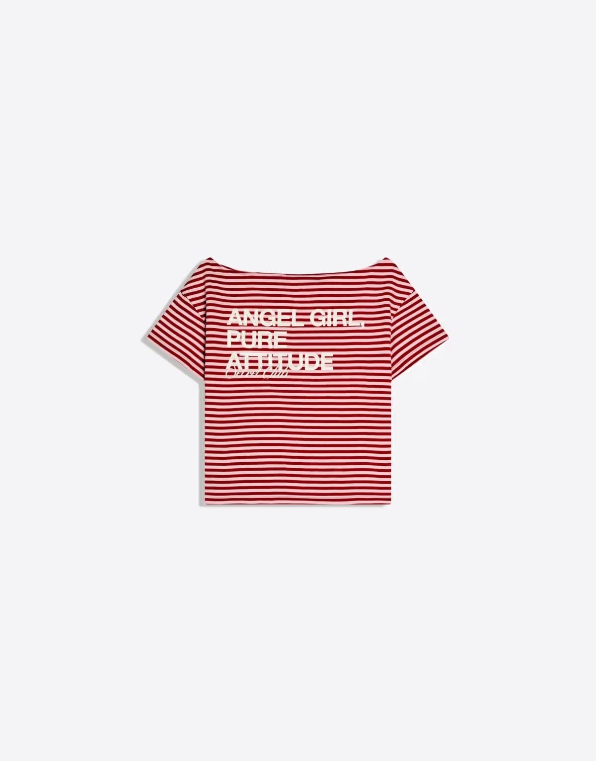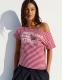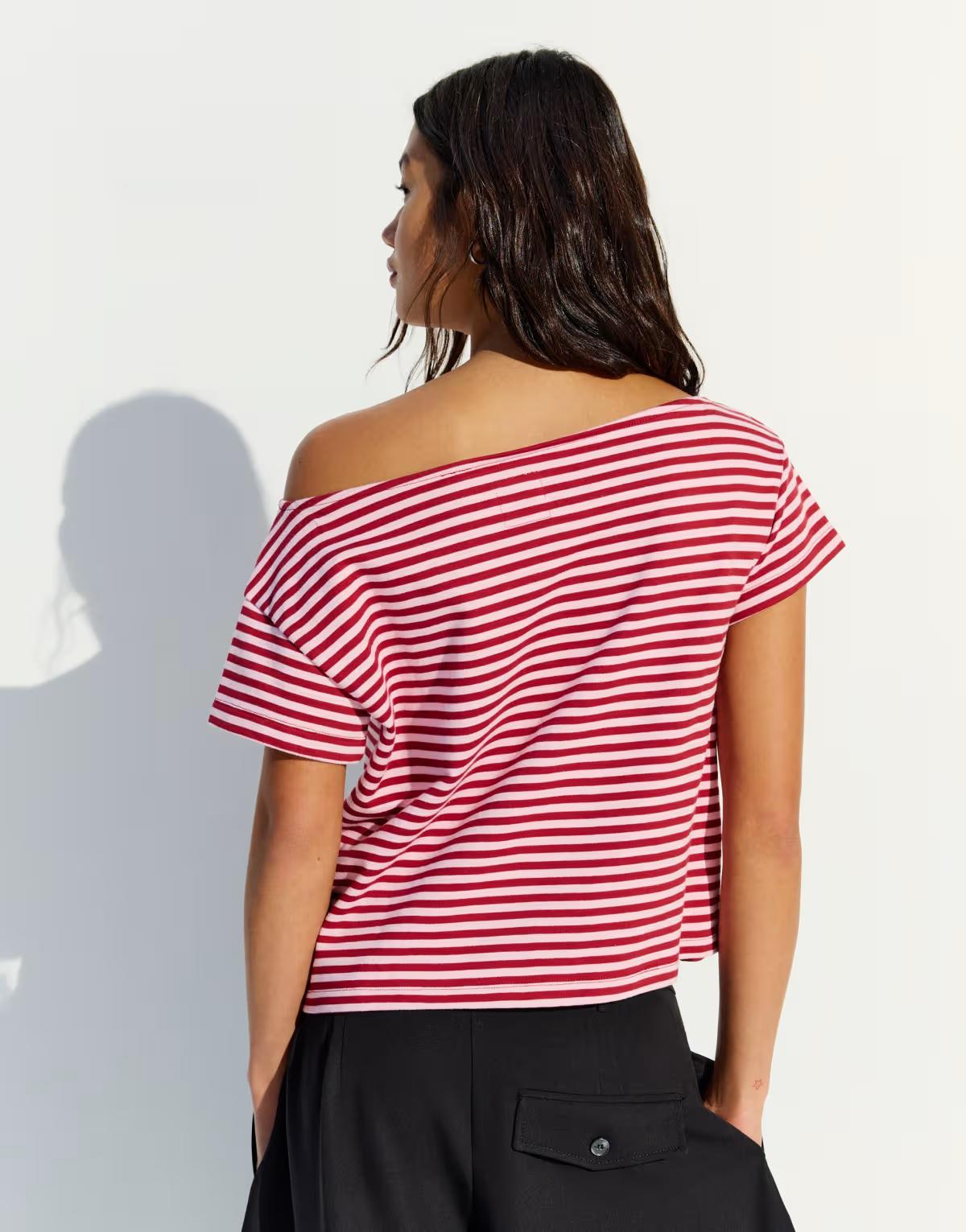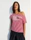 Bershka Short sleeve asymmetric neck print jumper in pink