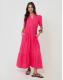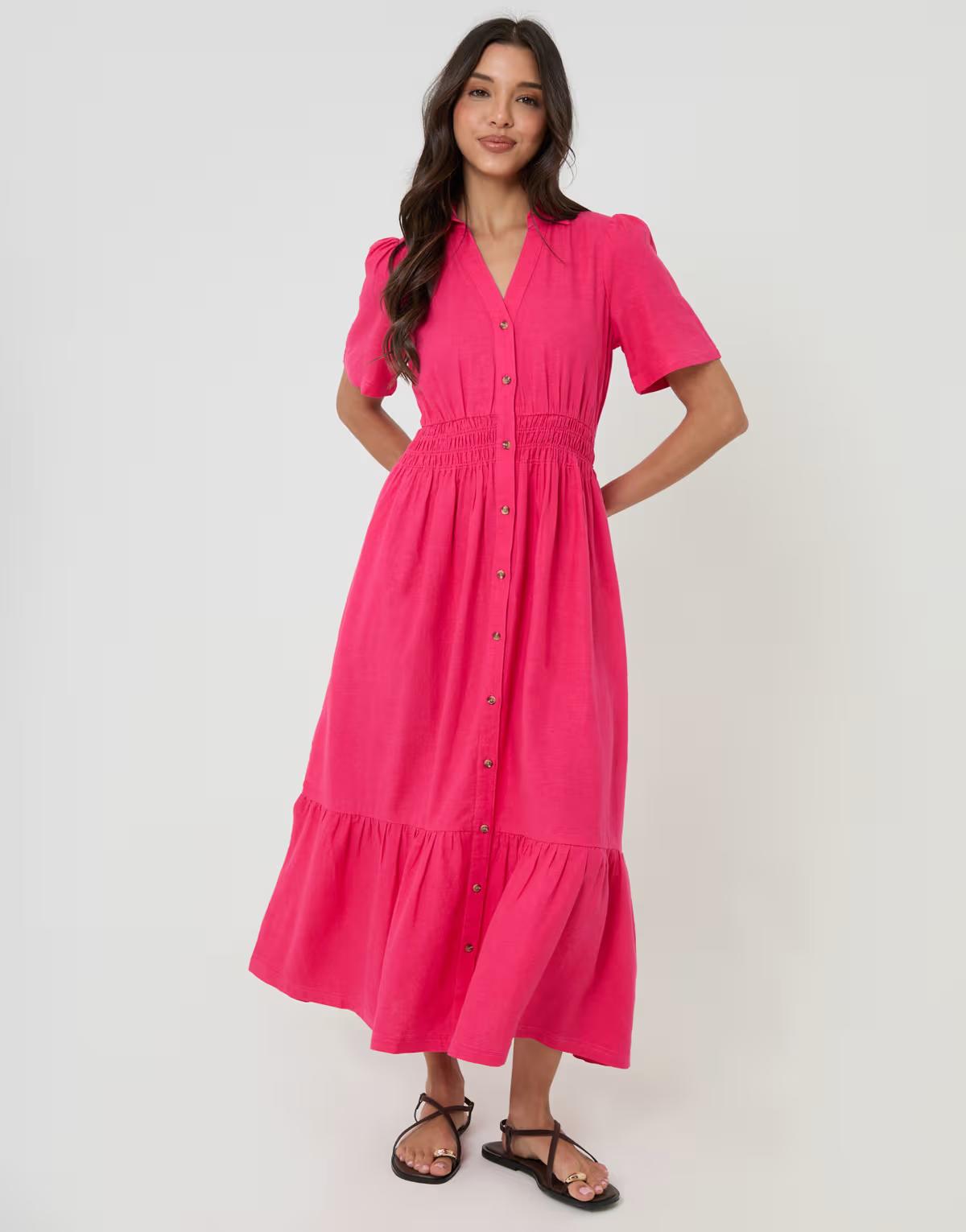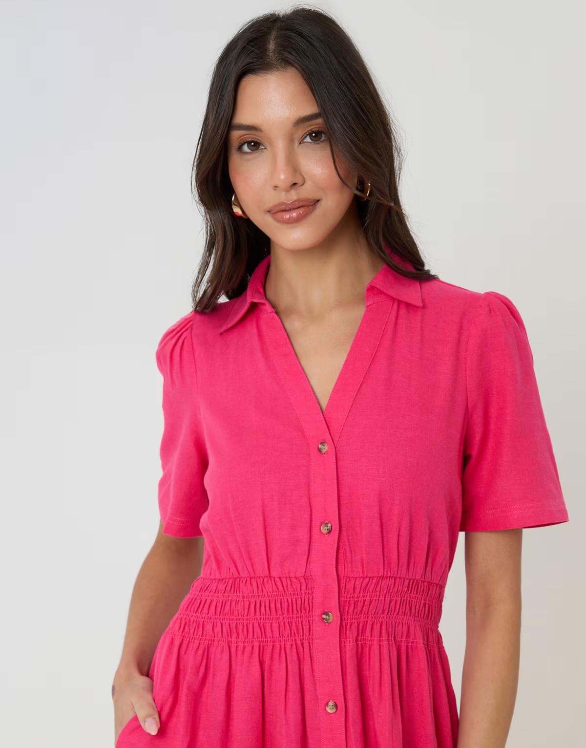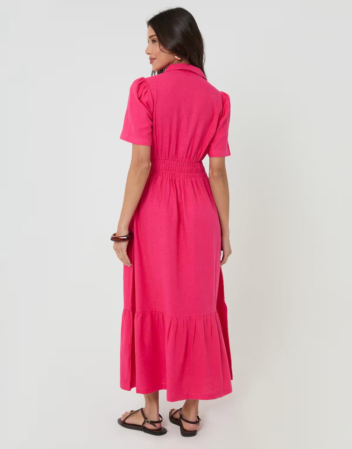 Threadbare Tiered linen blend v neck maxi dress in pink