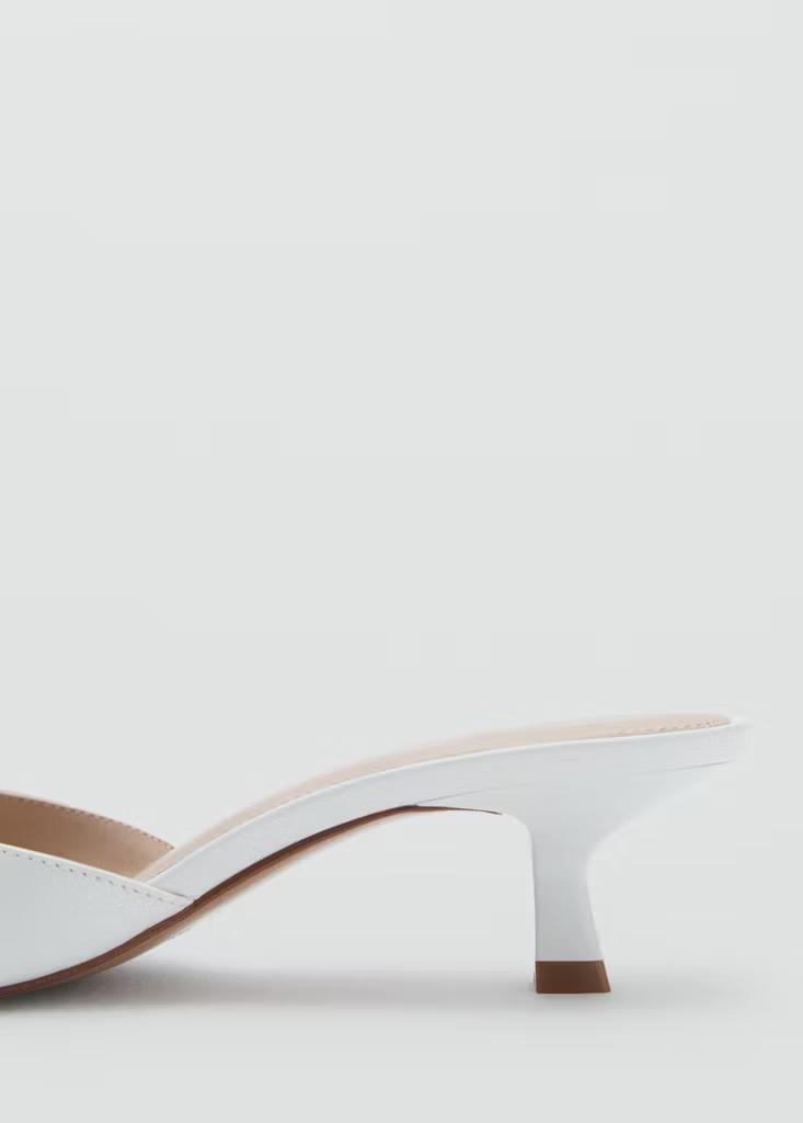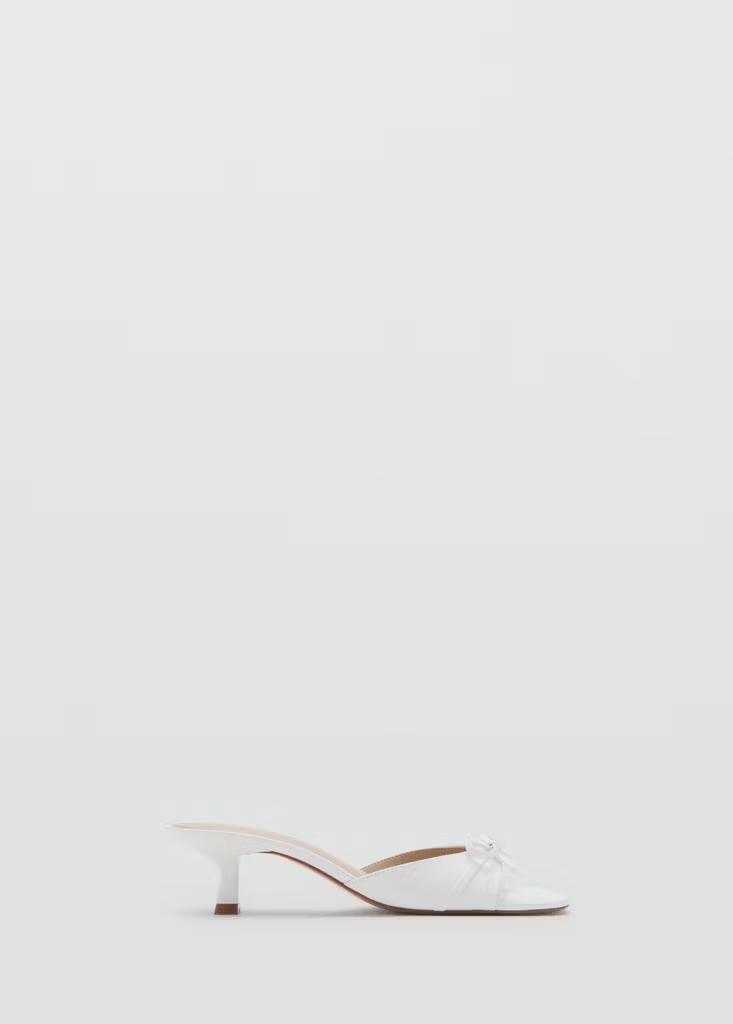 Efecto piel. Diseño de tira. Detalle de lazo. Puntera abierta. Diseño destalonado. Tacón kitten. El tacón mide 5 cm. Sin cierre