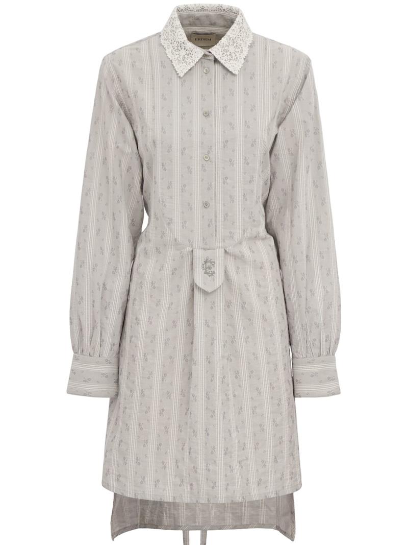 Ditsy striped cotton long sleeve dress - 灰色/多色 - 女士 - Erdem - Front button closure.