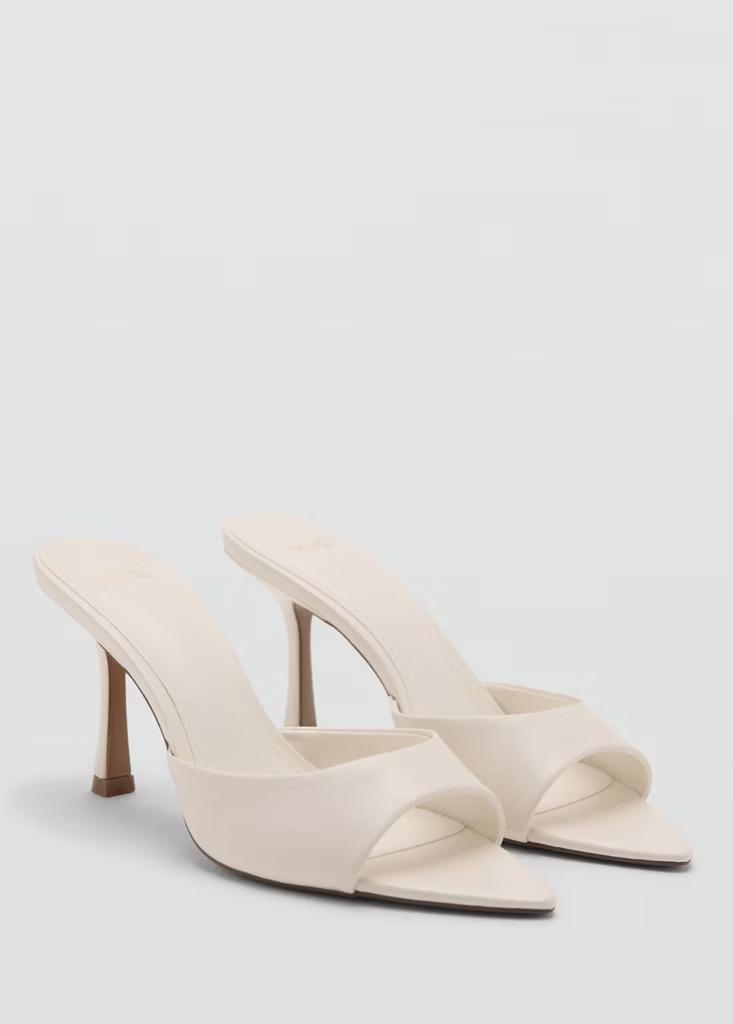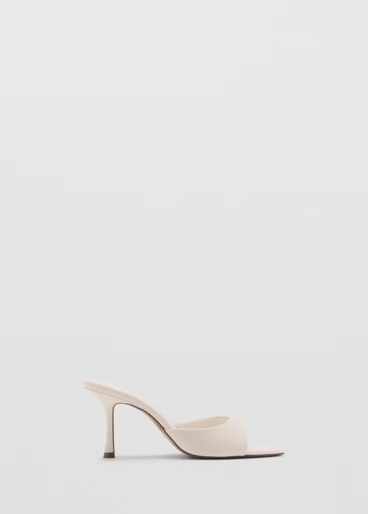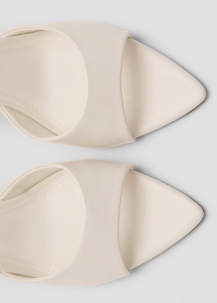 Efecto piel. Diseño destalonado. Con punta. Abertura en la parte delantera. El tacón mide 8 cm. Sin cierre. Forro interior