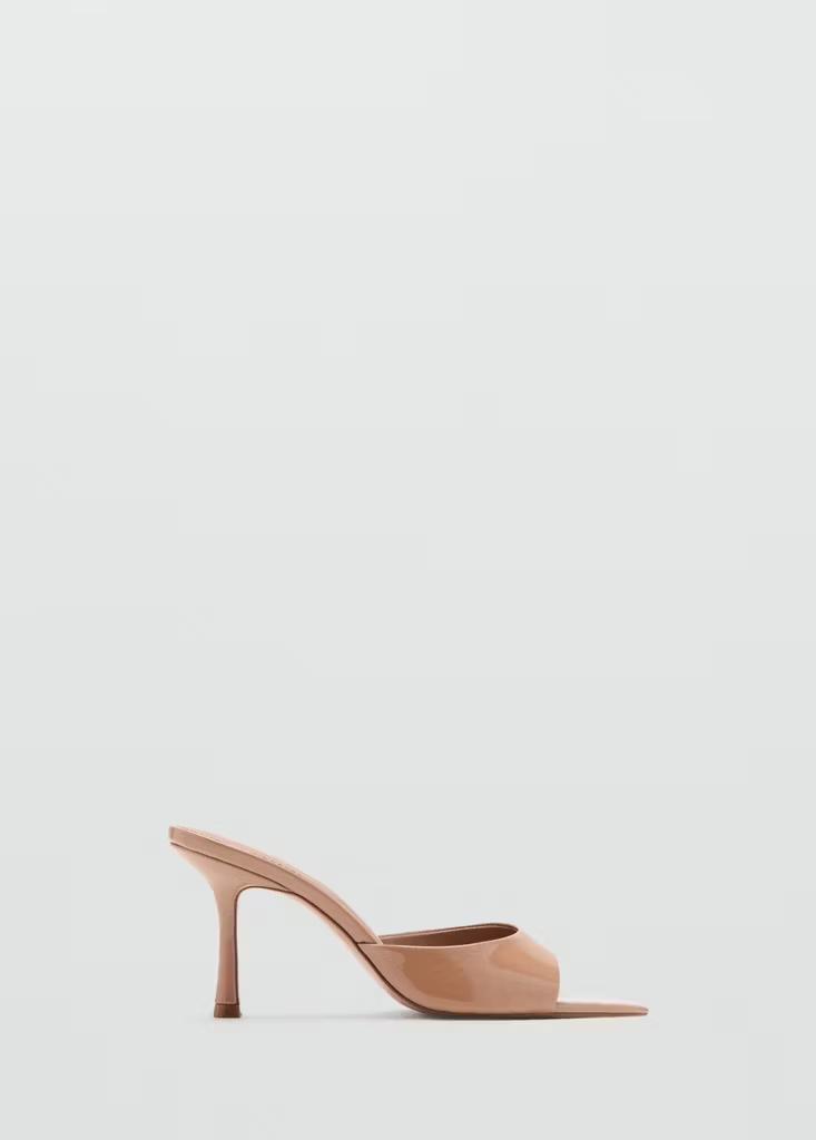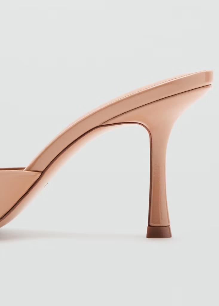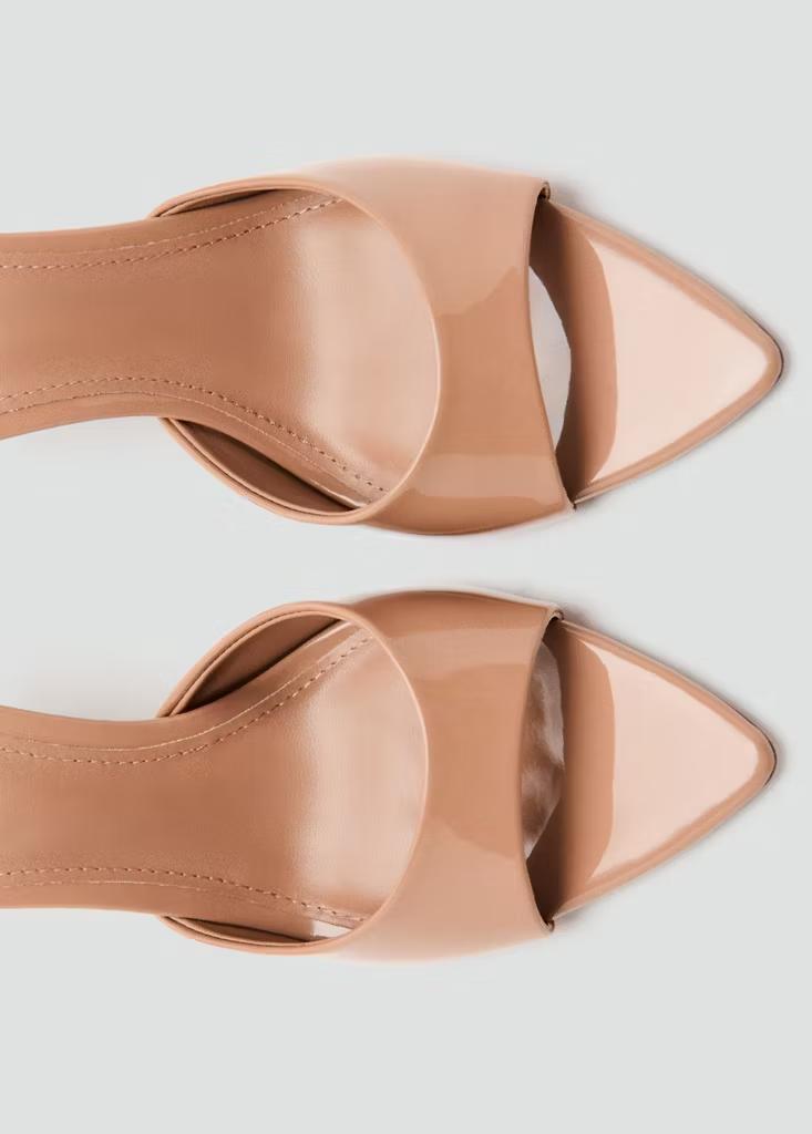 Efecto charol. Diseño destalonado. Con punta. Tacón de aguja. Sin cierre. El tacón mide 8 cm. Abertura en la parte delantera. Forro interior