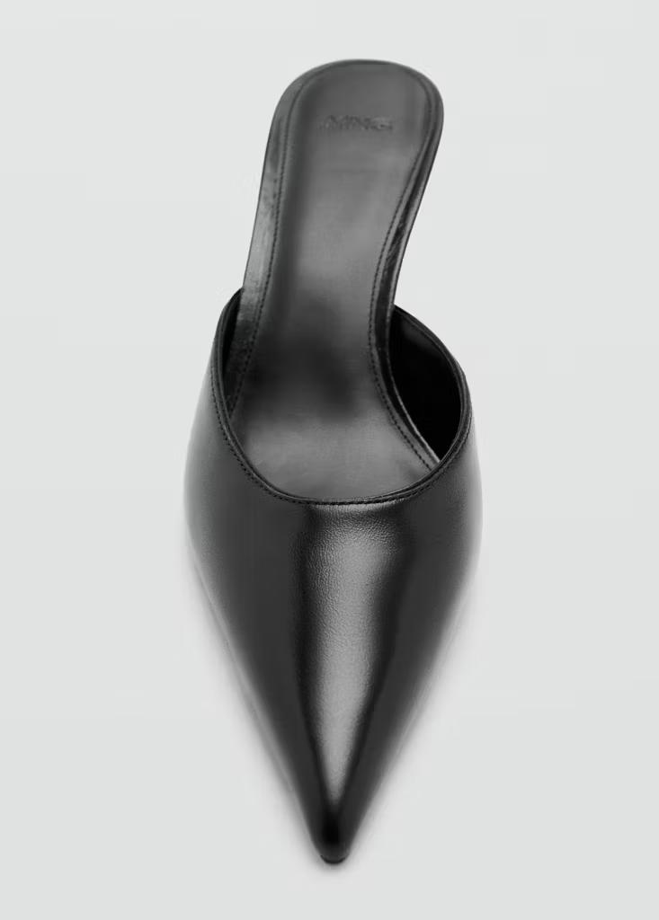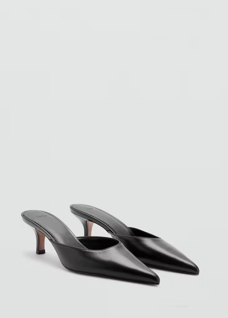 100% piel bovino. Con punta. Diseño destalonado. Tacón kitten. El tacón mide 4 cm