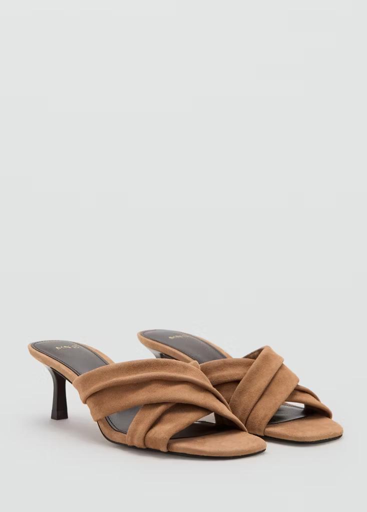100% piel caprino. Diseño destalonado. Puntera abierta. Diseño de tiras cruzadas. Tacón kitten. El tacón mide 6 cm