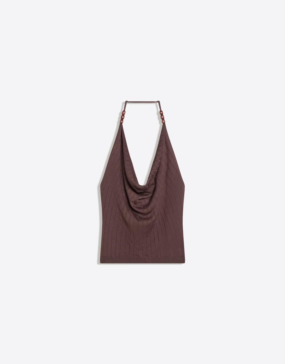 Bershka Draped halter top in brown