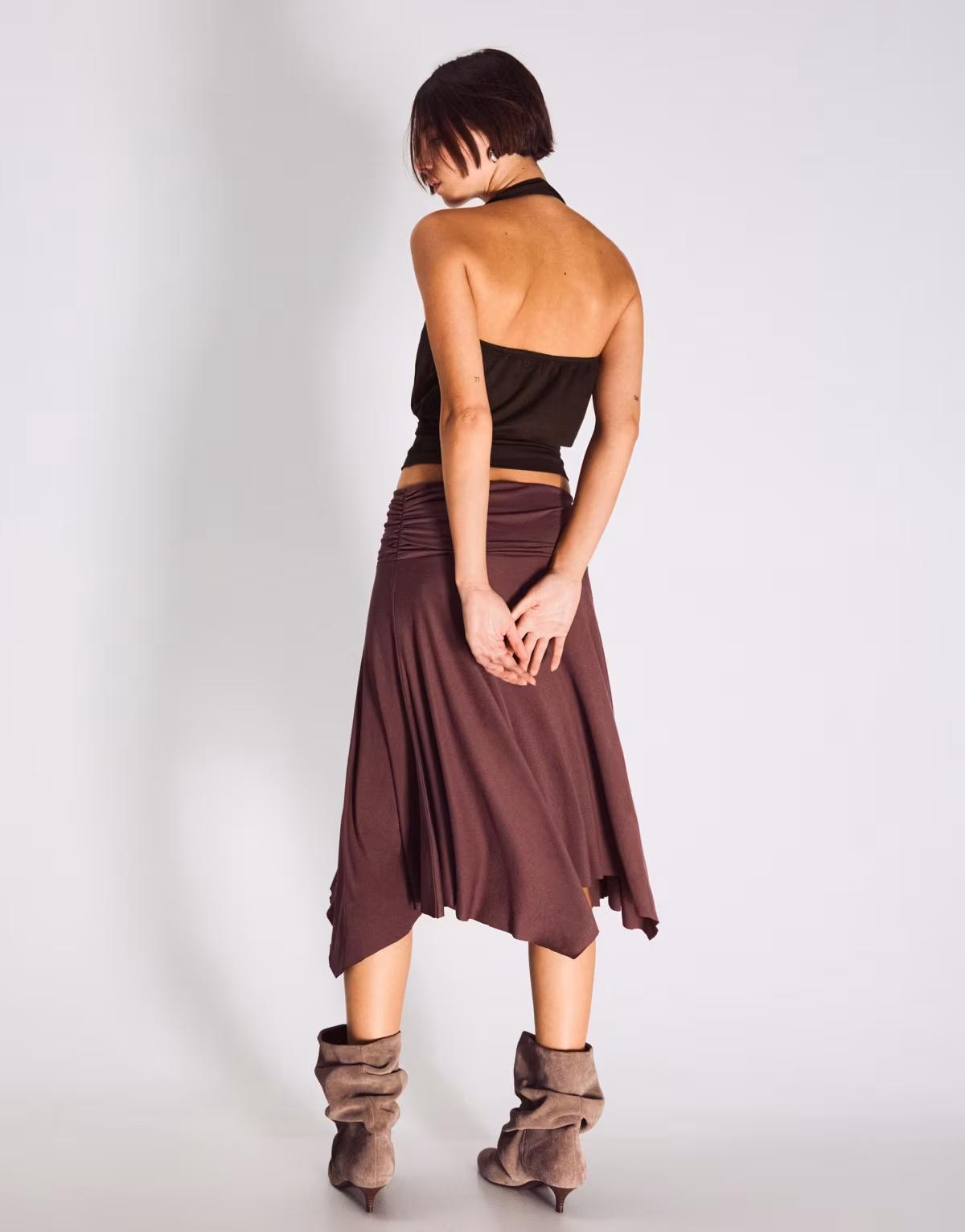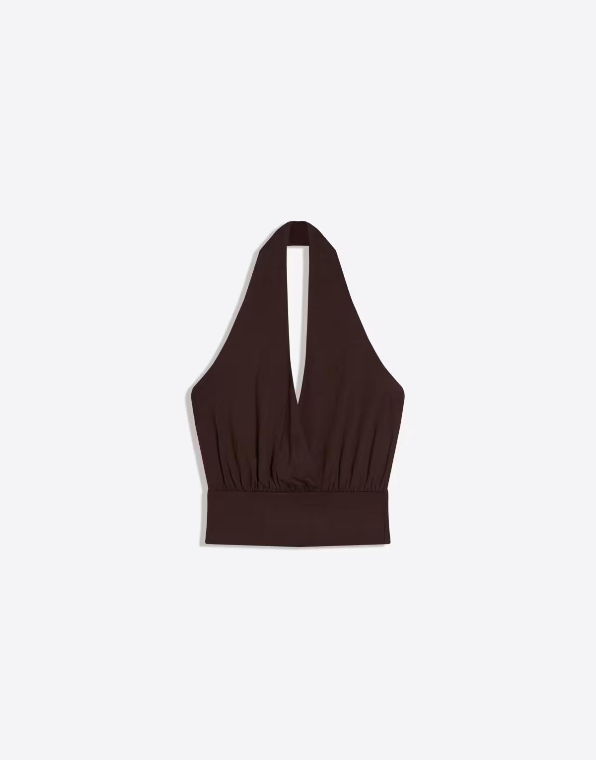Bershka Crossover ruched cummerbund top in brown