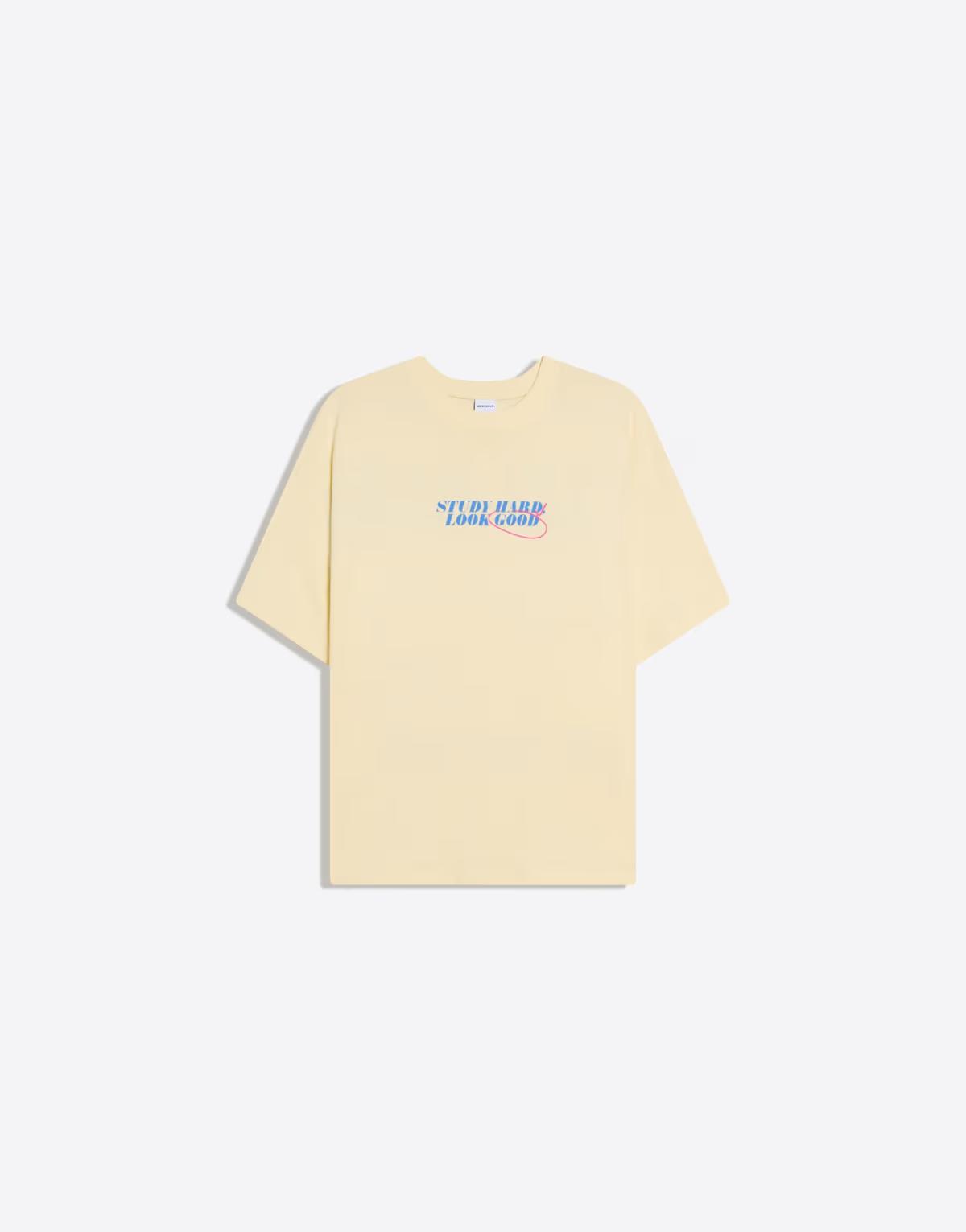 Bershka Oversize short sleeve print t-shirt in yellow