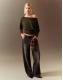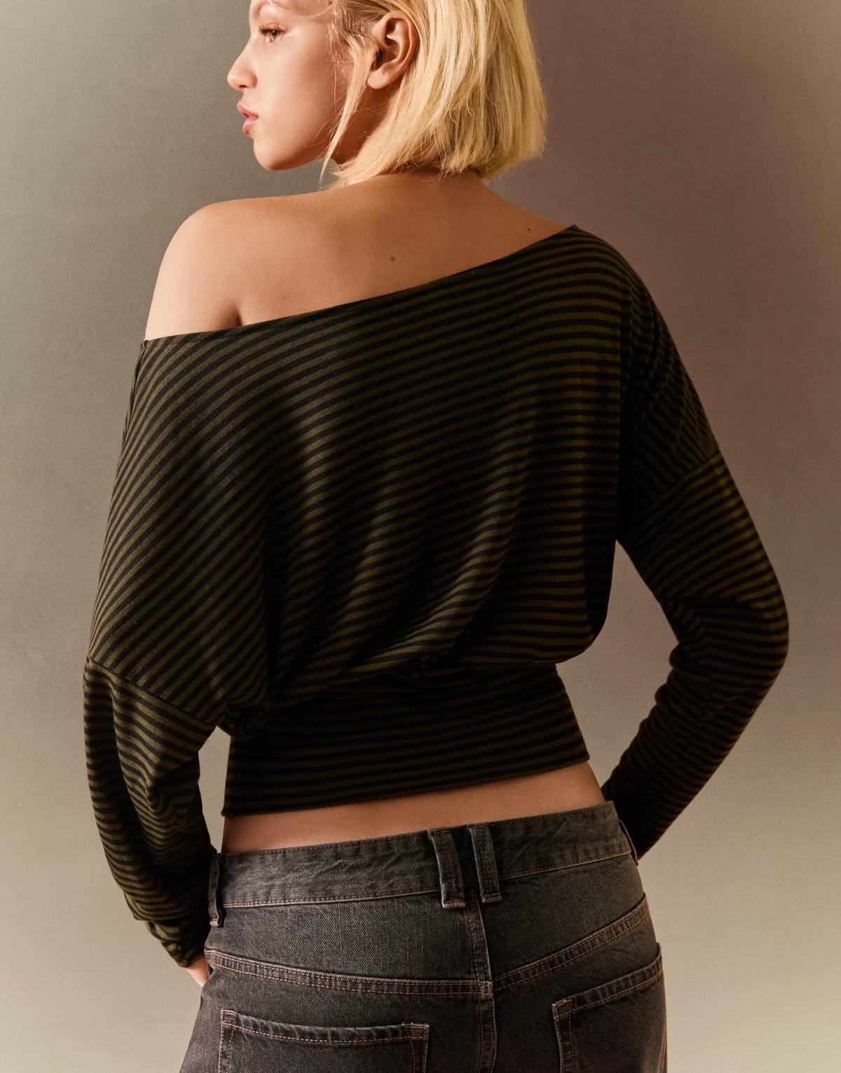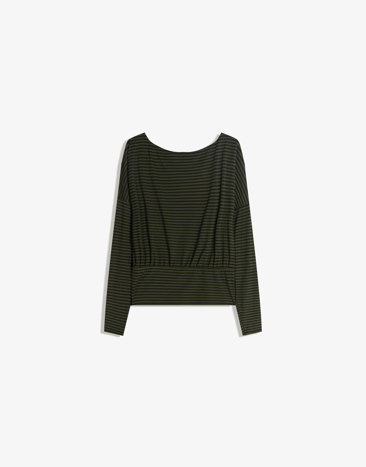 Bershka Striped long sleeve t-shirt with sash in khaki