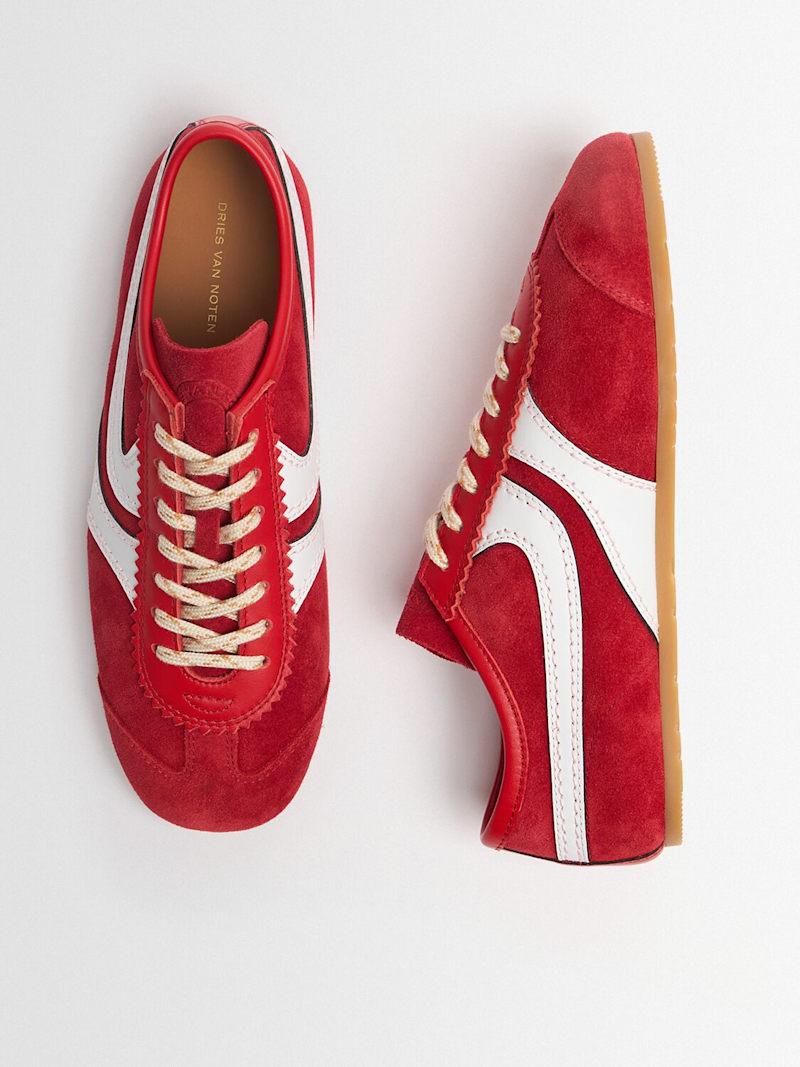 麂皮系带运动鞋 - 红色 - 女士 - Dries Van Noten - 麂皮鞋面.