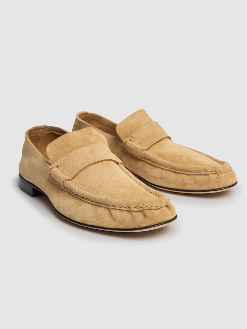 柔软麂皮乐福鞋 - Yellow Linen - 女士 - The Row - 皮革鞋面.