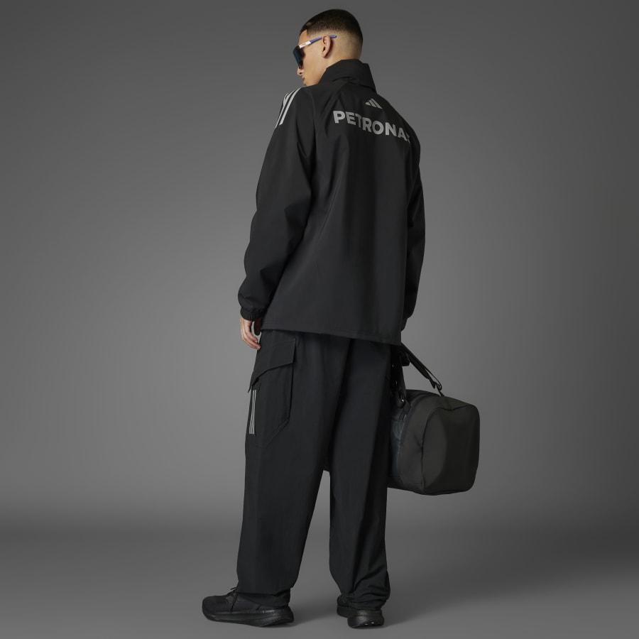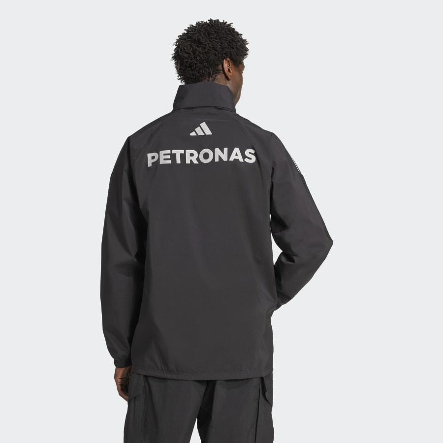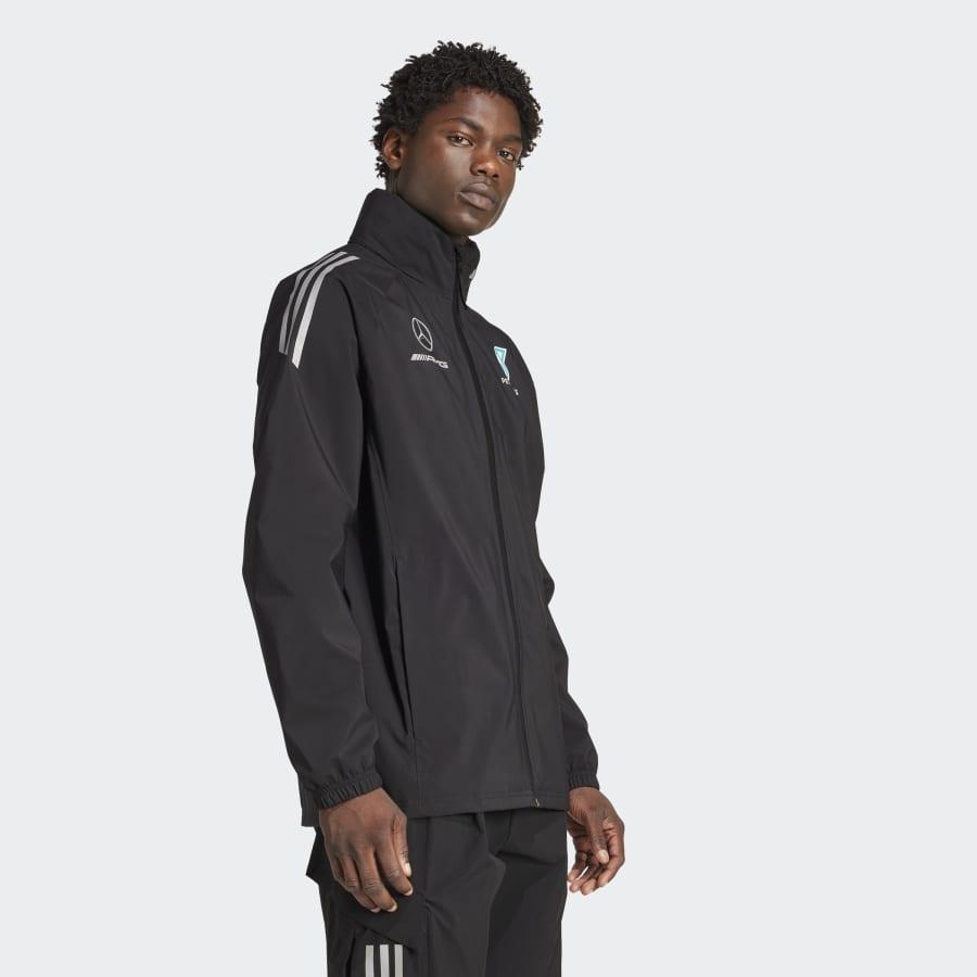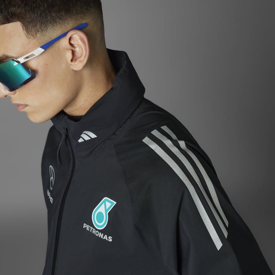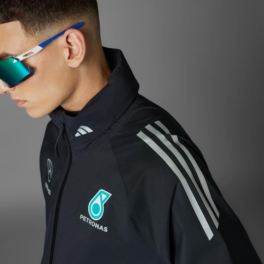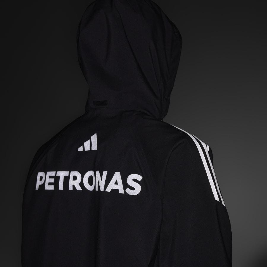 Regular fit","Full zip with bungee-adjustable hood","Outer:100% polyester (recycled); Inner:100% polyurethane","RAIN.RDY","Front pockets","Mesh lining","Packable hood","Mercedes - AMG Petronas Formula One Team logo"