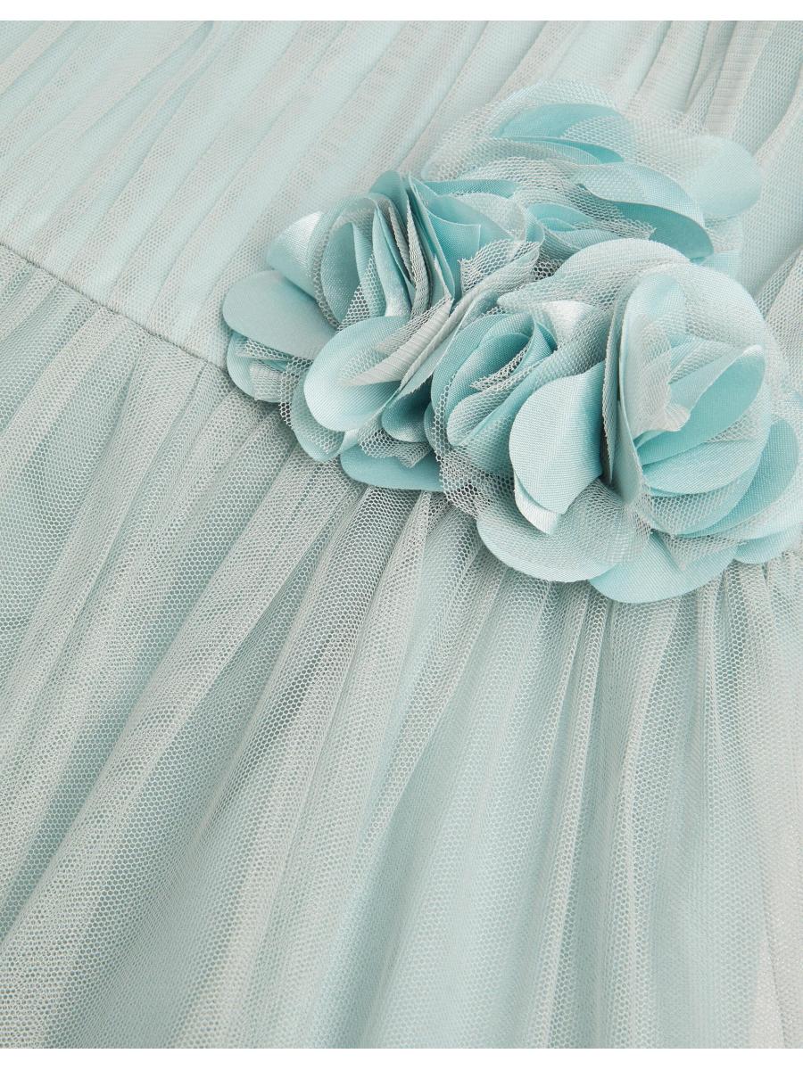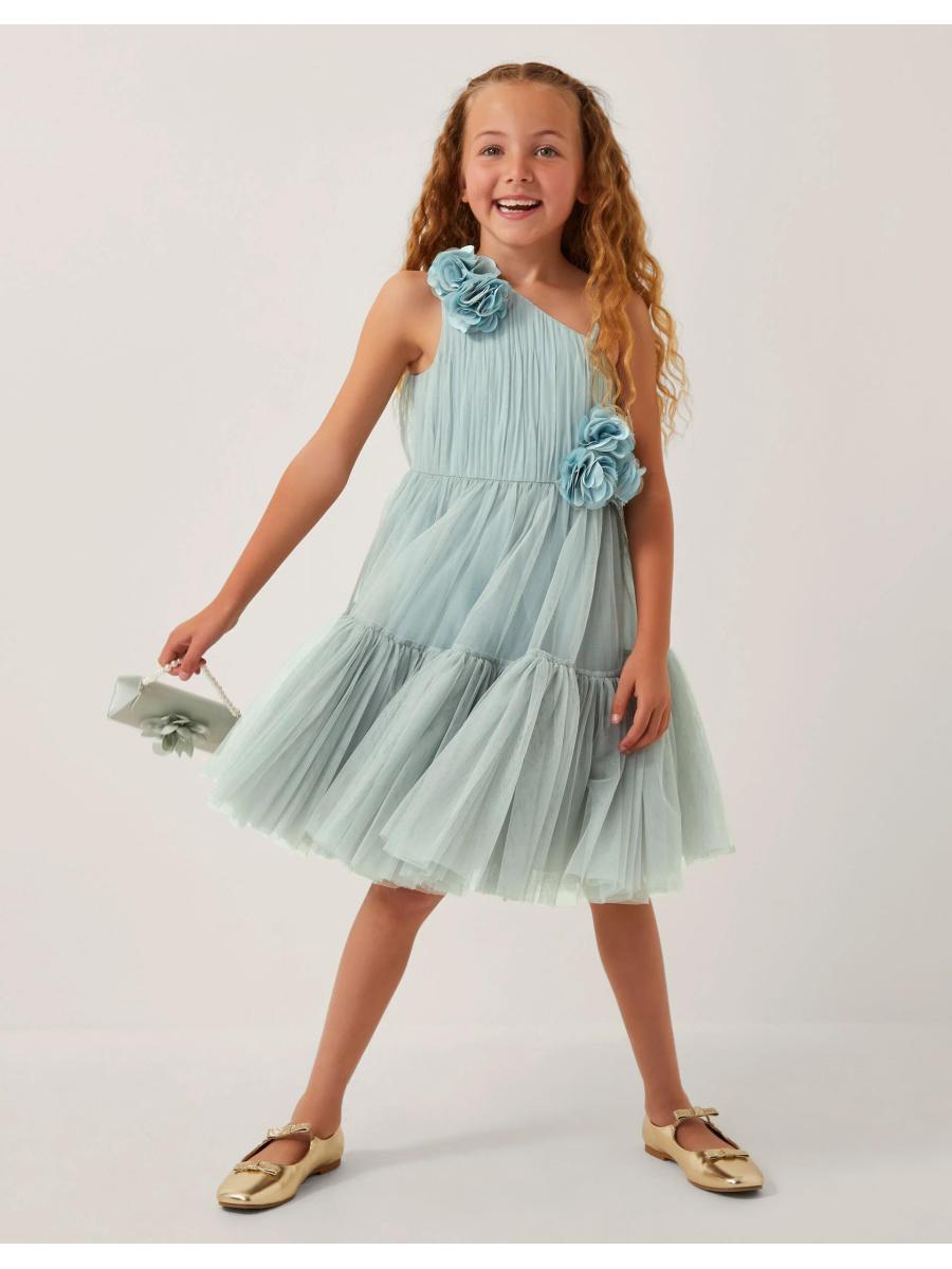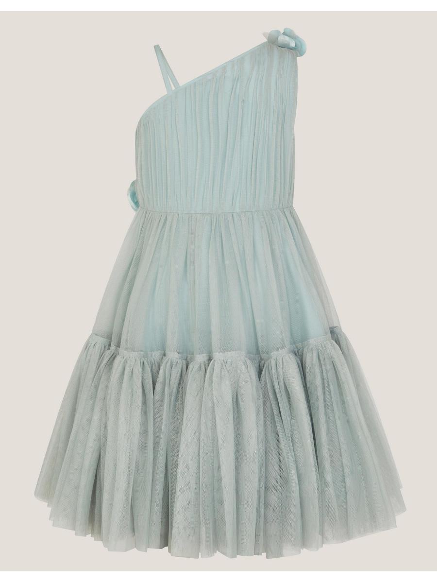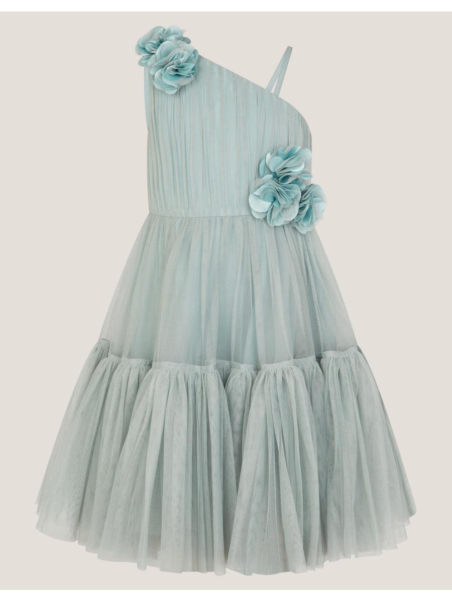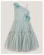 For dancing queens in training. Made with a delicate tulle overlay, this dress features asymmetrical straps, pretty applique flowers and a flouncy hem that's perfect for twirling on the dancefloor. Green