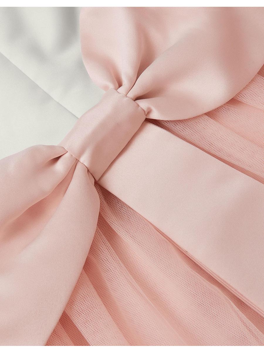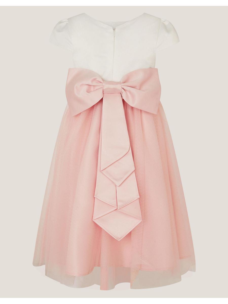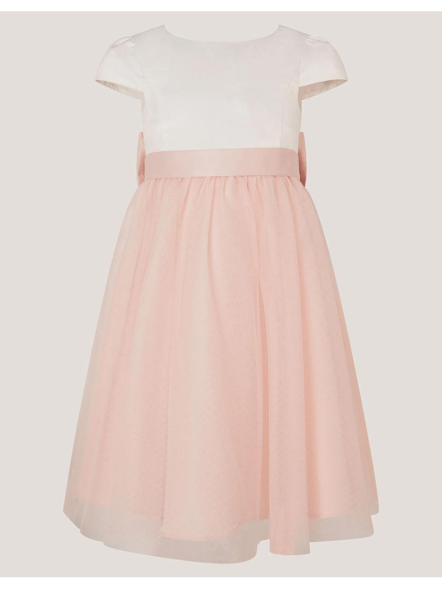Do I hear wedding bells? A special dress for a special occasion, this beautiful bridesmaid dress is designed with a short sleeve satin bodice and delicate tulle skirt in the same colour as the bow belt. Finished with discreet zip fastening. Pink