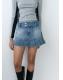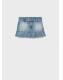 Tejido de algodón estilo tejano vaquero. Tamaño mini. Slim fit. Tiro bajo. Trabillas. Panel de tablas en el bajo. Cierre de cremallera y doble botón en la parte delantera. La modelo mide 1,78 y lleva una talla S/36. Largo de costado 28.5 cm. Largo de la falda 29.5 cm