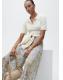 Tejido de gasa. Diseño semitransparente. Diseño largo. Diseño balloon. Estampado de flores. Tiro medio. Detalle de lazos en el bajo. Sin cierre. Forro interior. Largo del interior de la pierna 69.4 cm