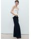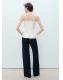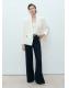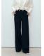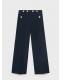 Diseño largo. Diseño recto. Tiro medio. Bolsillos laterales. Detalle de botones en contraste en la cintura. Dos bolsillos de ribete en la parte posterior. Cierre delantero de botón, gancho y cremallera ocultos con tapeta