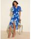 Friends Like These Cobalt Blue Chiffon Mix Flutter Sleeve Wrap Dress