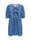 ONLY Blue Denim Tie Front Puff Sleeve Dress