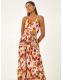 Roman Red Abstract Tassel Trim Maxi Dress