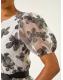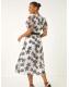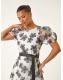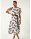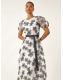 Roman White Floral Print Organza Belted Dress