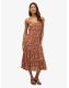 Superdry Brown Half Button Tiered Midi Dress