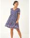 Roman Blue Petite Floral Print Paisley Tiered Dress
