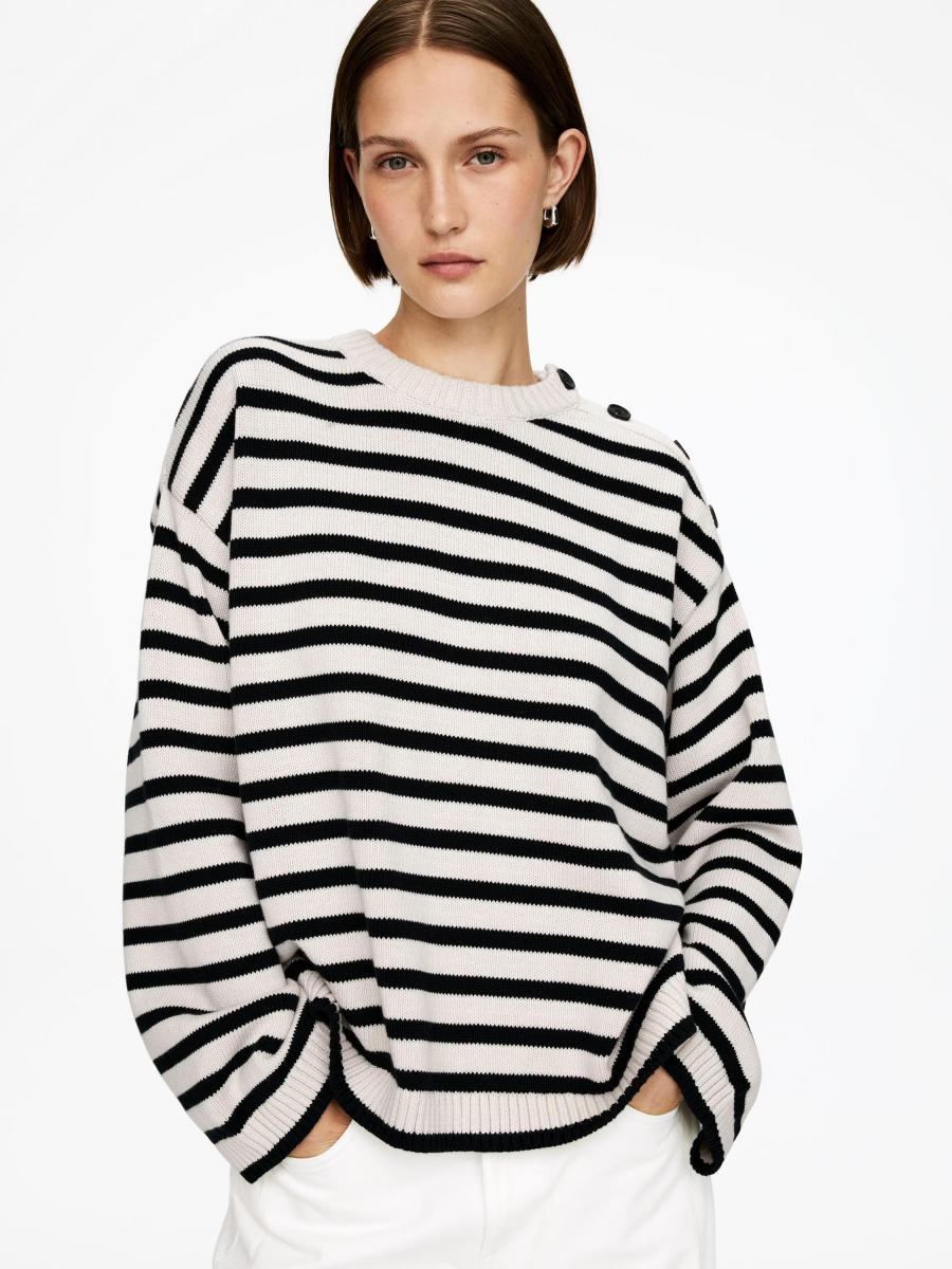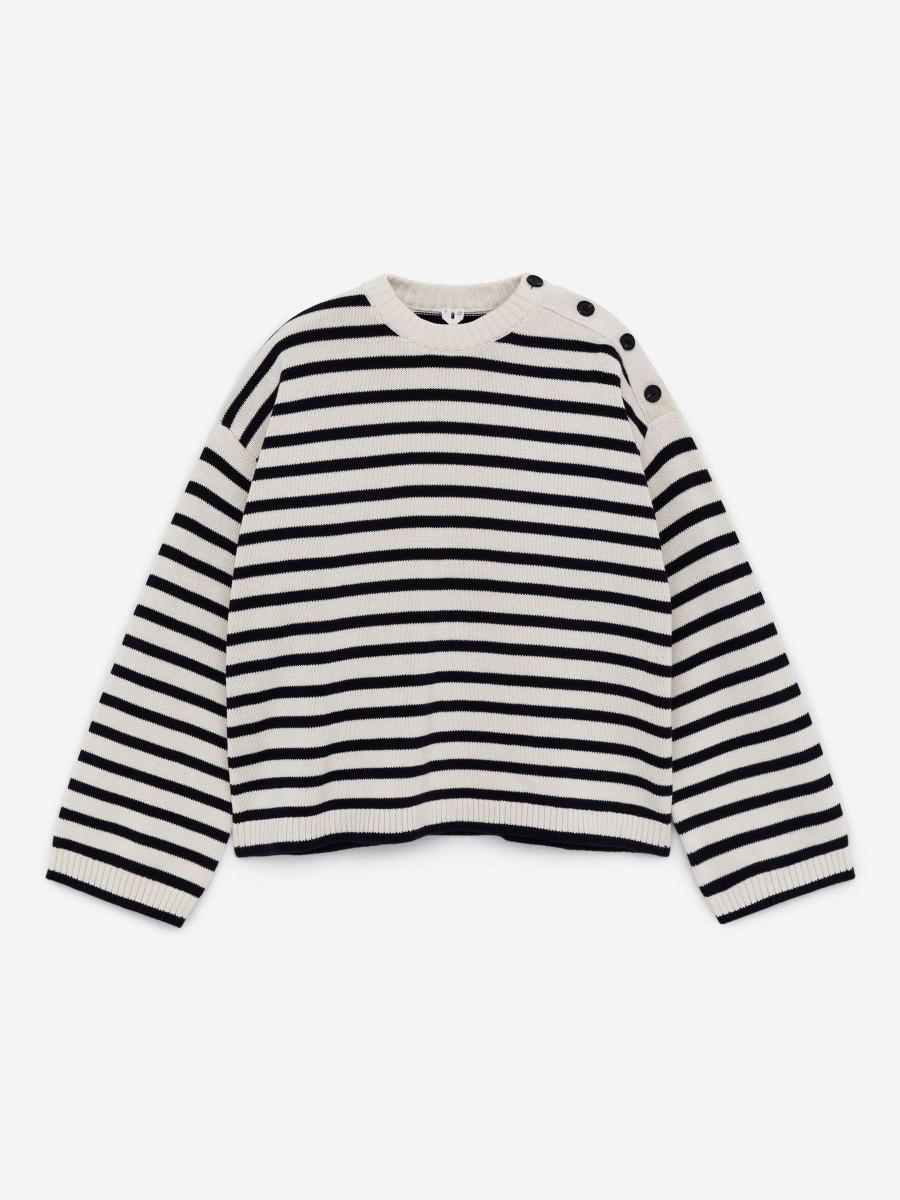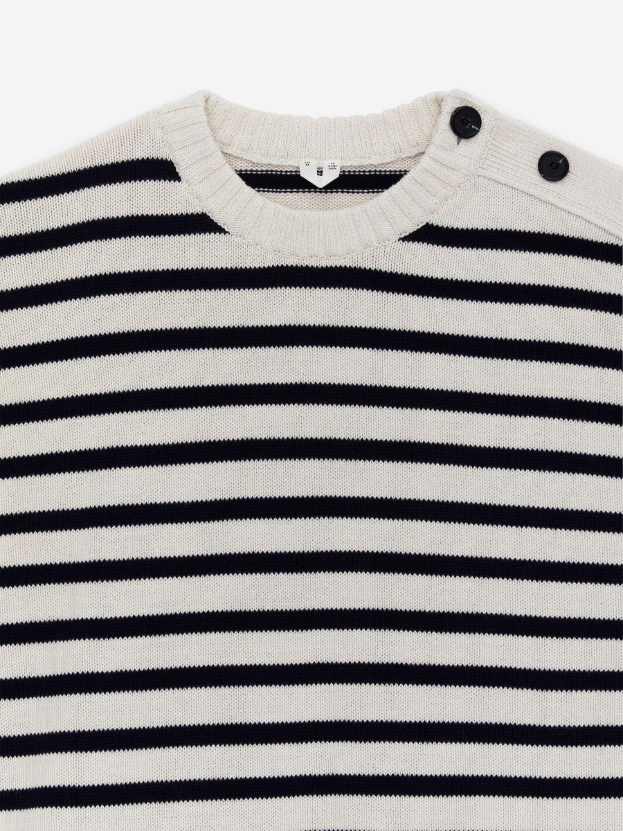 Designed for a relaxed fit, this soft cotton jumper is styled with buttons at the side of the neck. Ribbed trims.