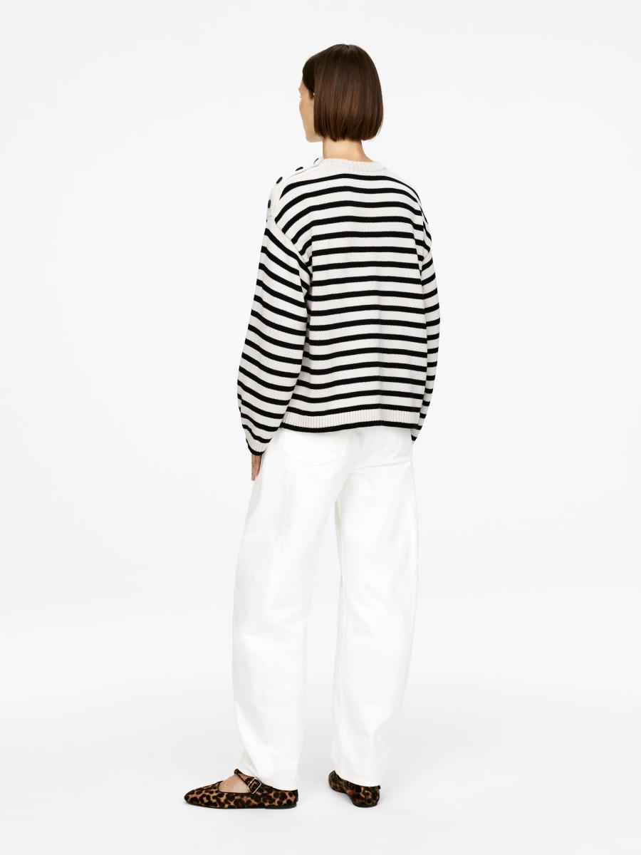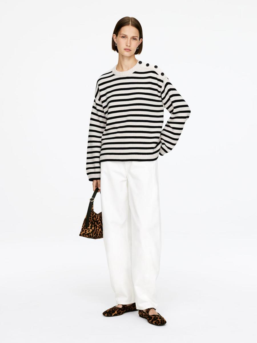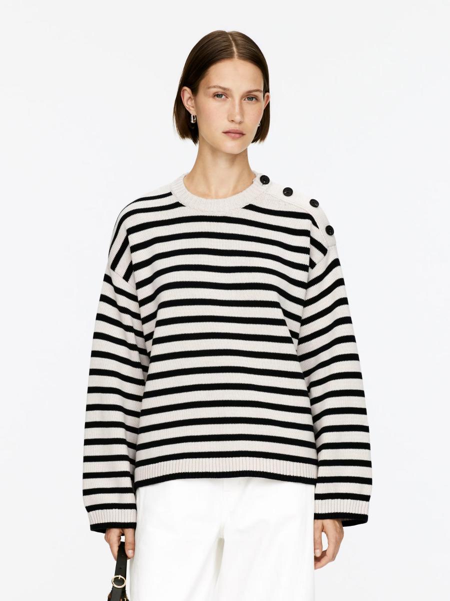 Designed for a relaxed fit, this soft cotton jumper is styled with buttons at the side of the neck. Ribbed trims.