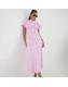 Pink Short Sleeve Drape Side Midi Dress