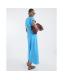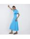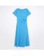 Blue Short Sleeve Drape Side Midi Dress