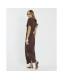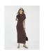 Brown Asymmetrical Ribbed Midi Dress