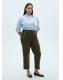 Tejido mezcla de algodón. Diseño largo. Diseño recto. Diseño crop. Tiro medio. Dos bolsillos laterales. Cierre oculto de botón, gancho y cremallera. Botones efecto joya. Disponible Plus. Forro interior