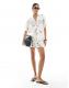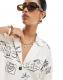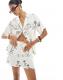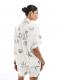 ASOS DESIGN linen blend short sleeve co-ord shirt in sketchy print