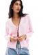 Miss Selfridge satin tie front collared shirt in pink