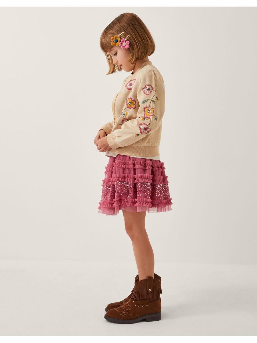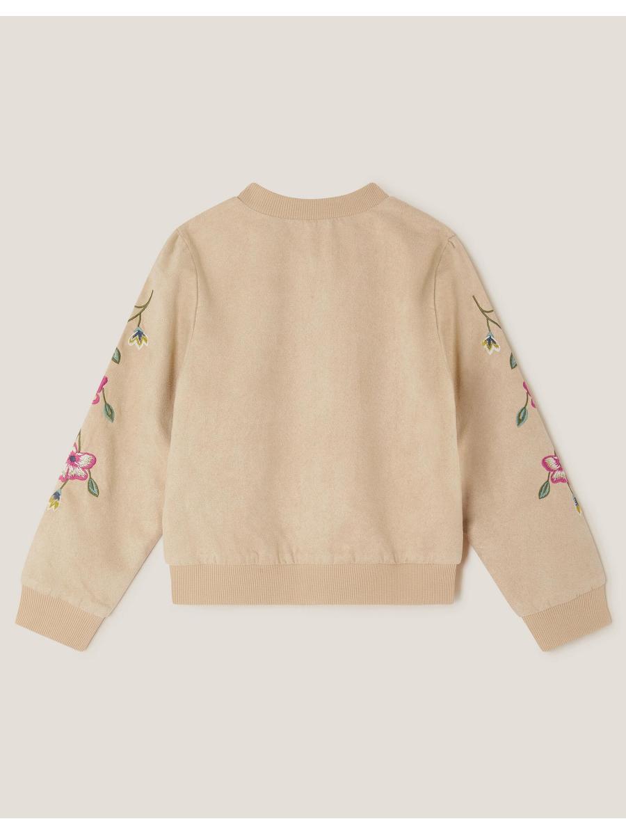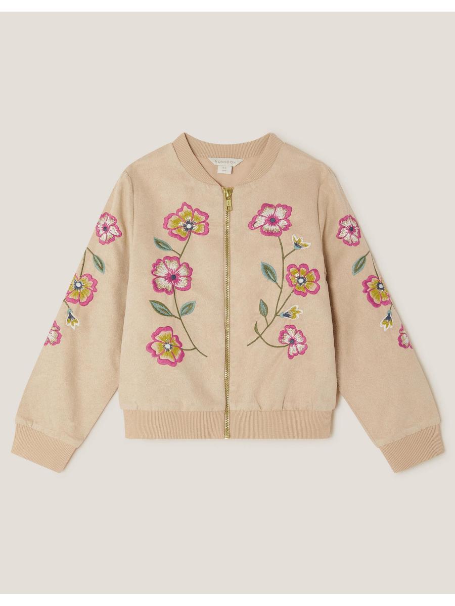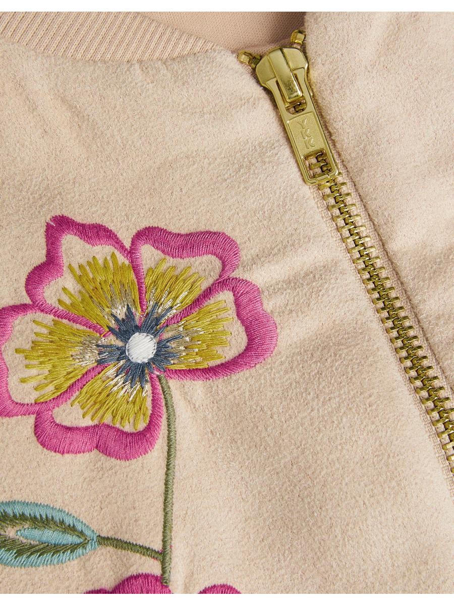 Bring on the boho. Made from super-soft (faux) suede, this bomber jacker is a cute addition to all their weekend looks. Finished with floral embroidery and a front zip fastening. Camel