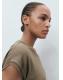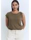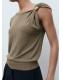 Este jersey sin mangas redefine la elegancia con su cuello asimétrico, adornado con un fruncido sutil y un detalle metálico. Perfecto para un look contemporáneo y desenfadado. Está disponible en tallas plus